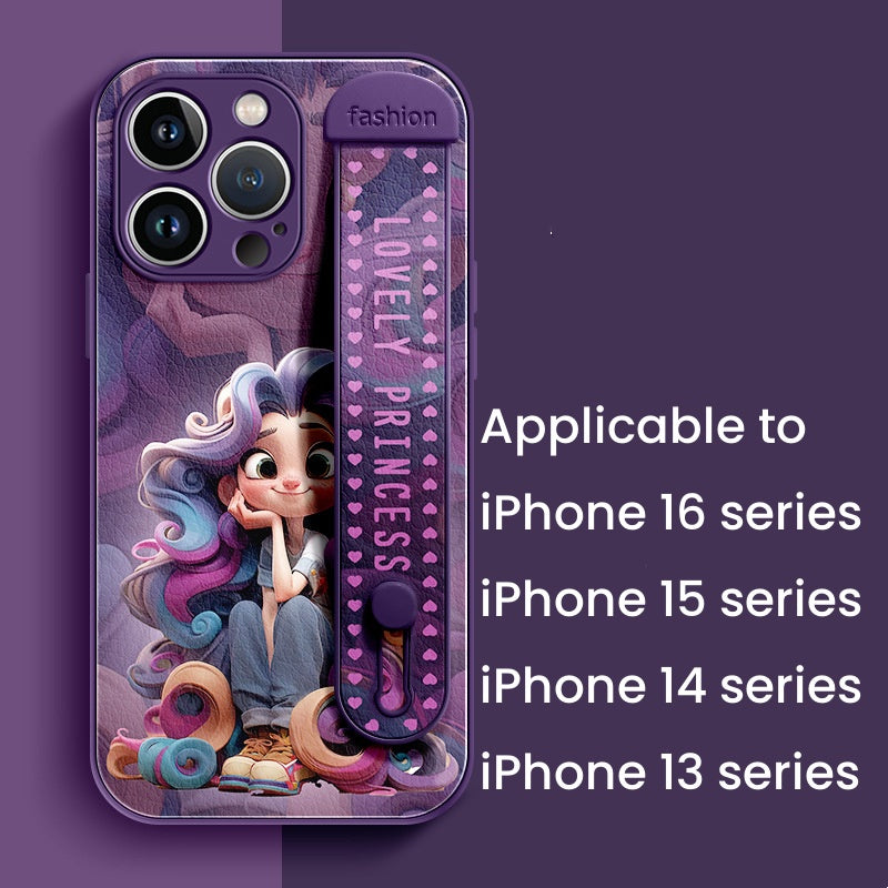 New lambskin lens full-cover wristband anti-fall mobile phone case