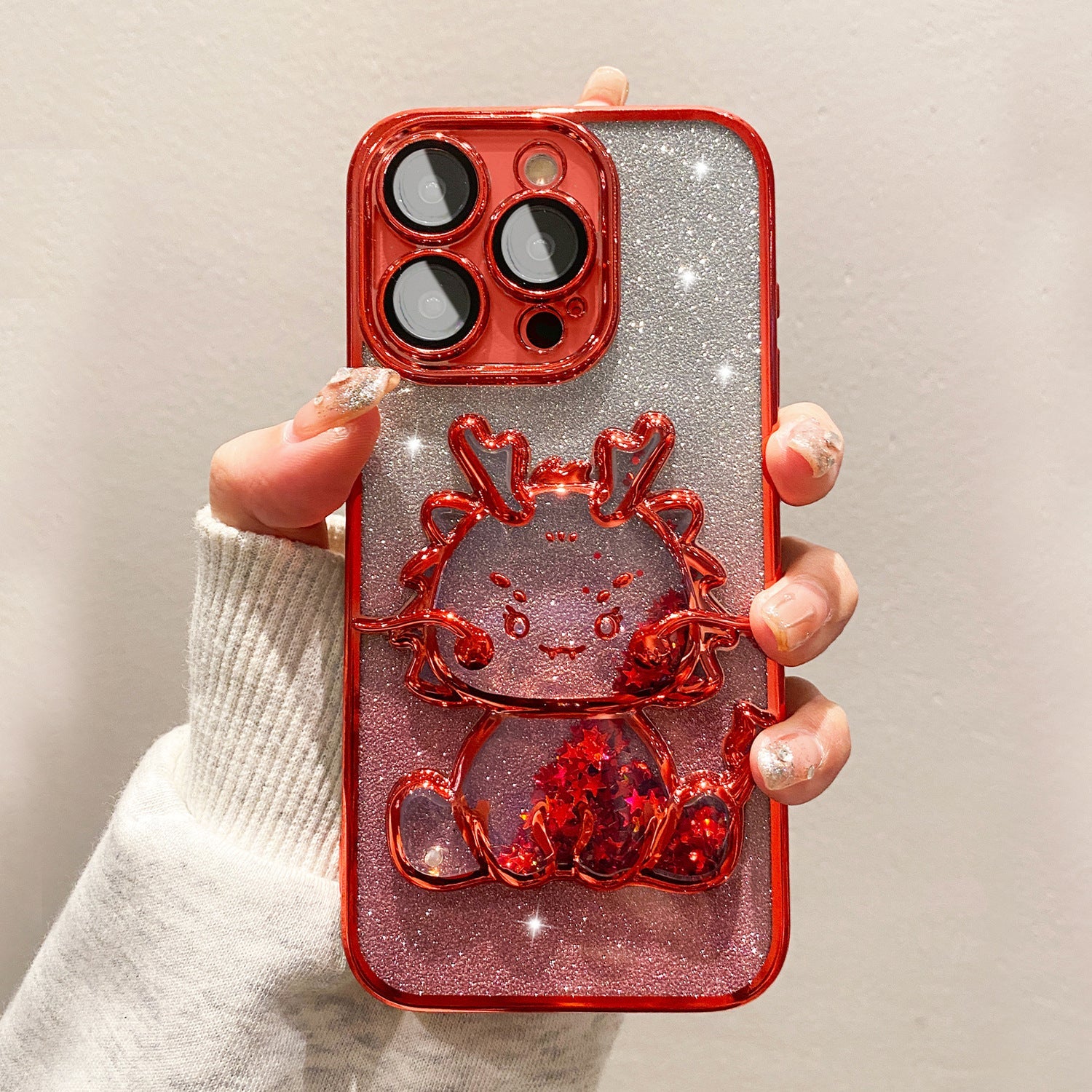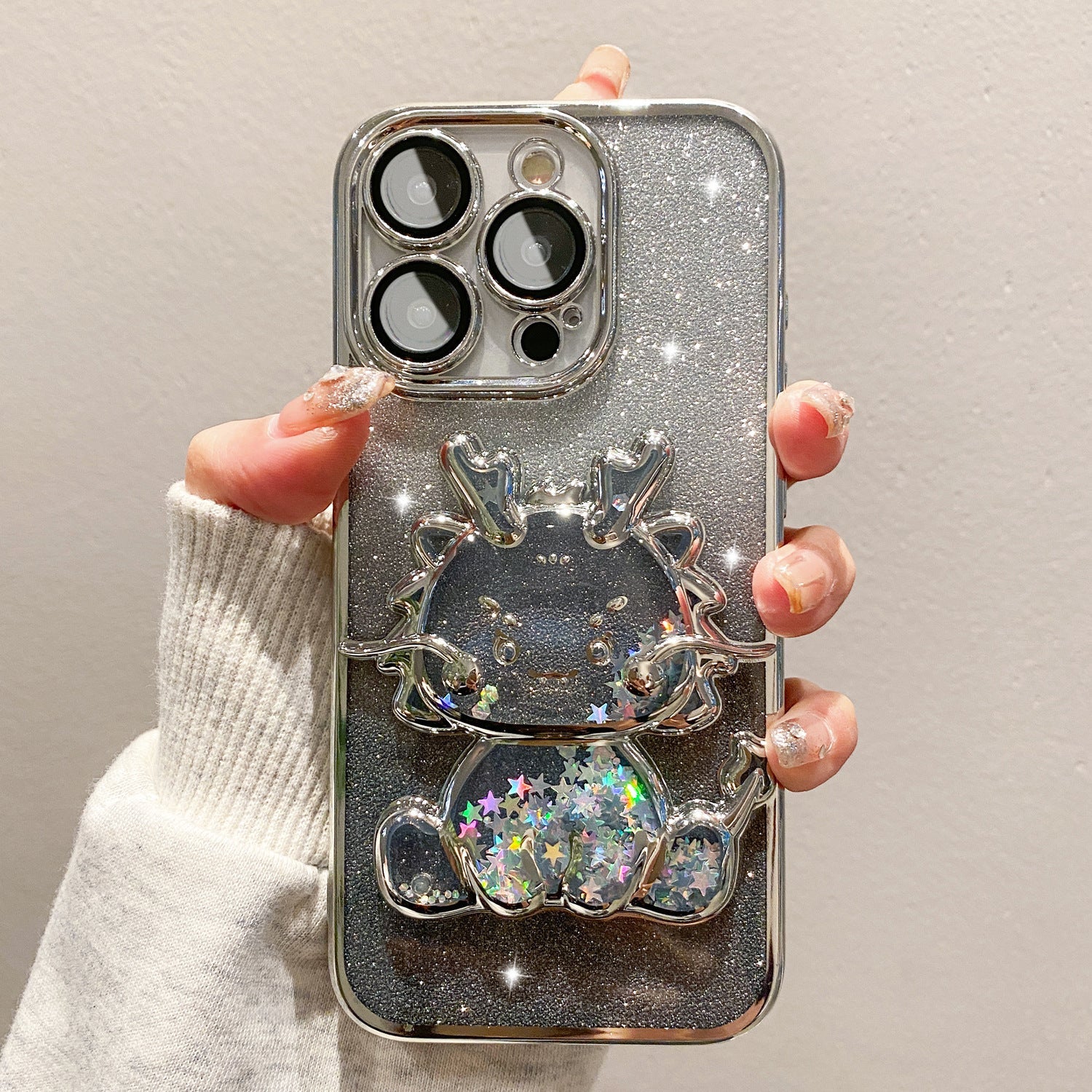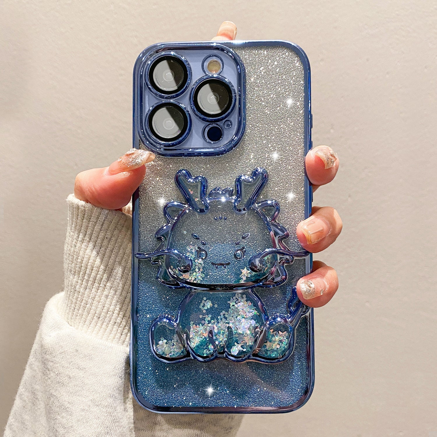 New Year Flow Salon Gradient Glitter Lens Protector iPhone Case