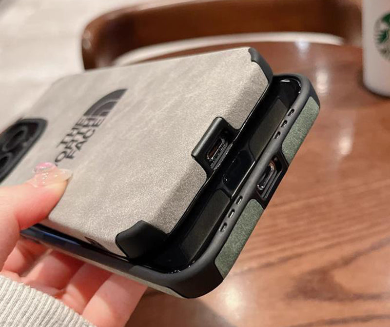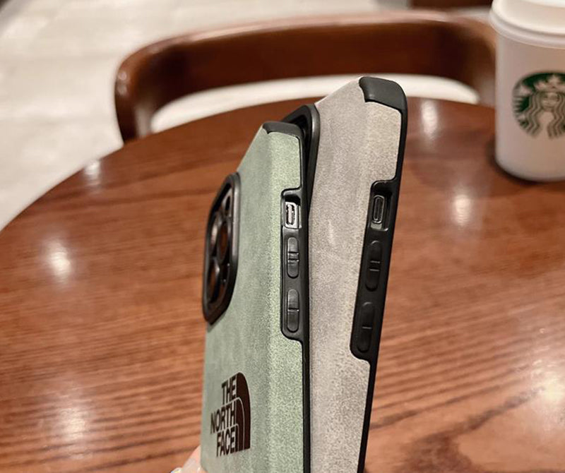 This North Face Leather Phone Case is stylishly designed with genuine black leather, offering your device a sleek and sophisticated look. Its robust cover provides strong protection, and the textured finish provides a secure grip. High quality stitching adds an extra layer of durability.