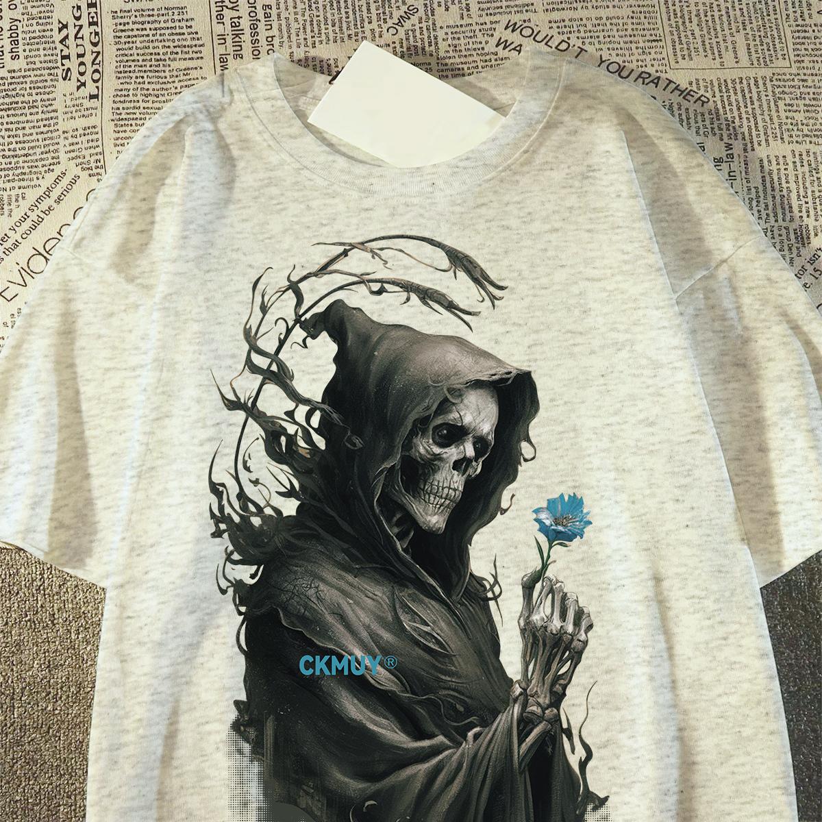 Original brand "Blue Flower Skull" 100% cotton T-shirt