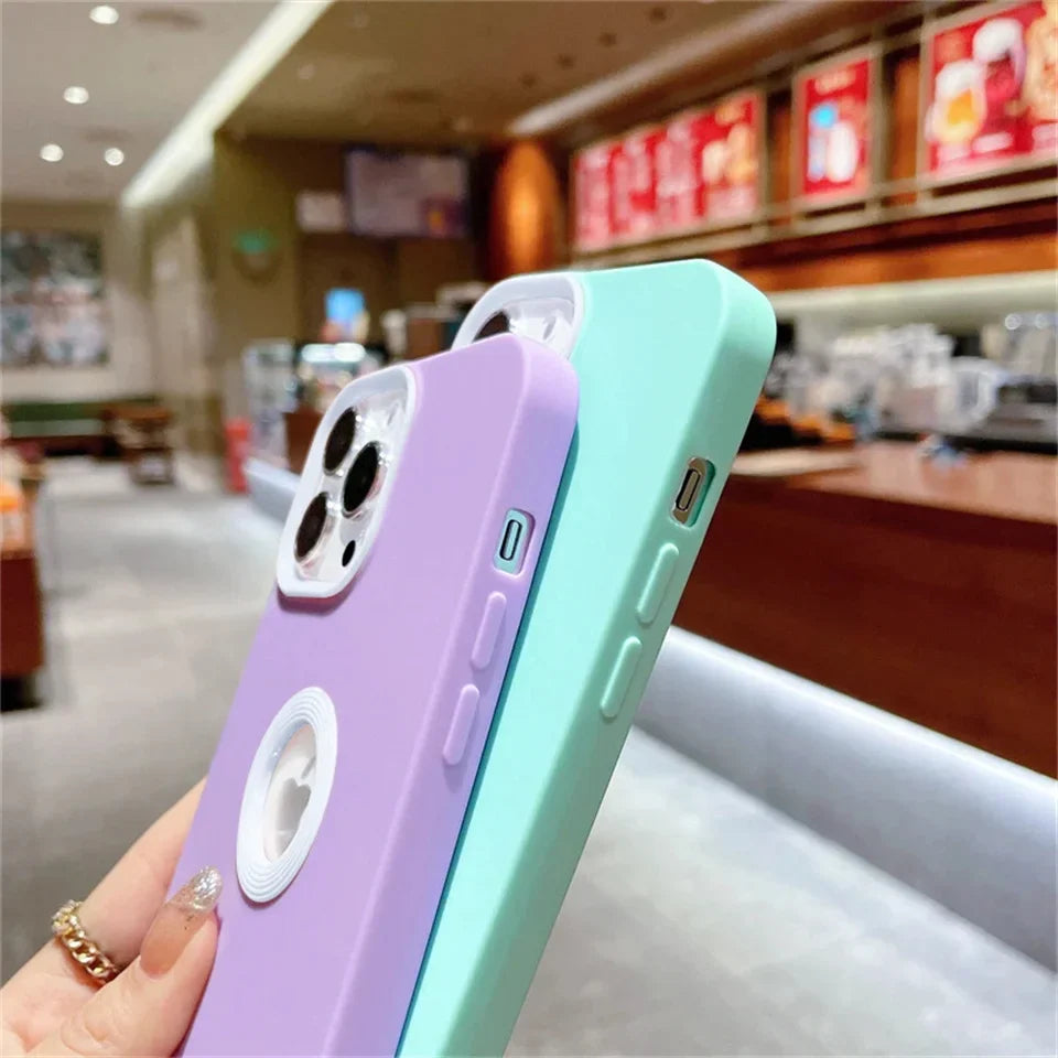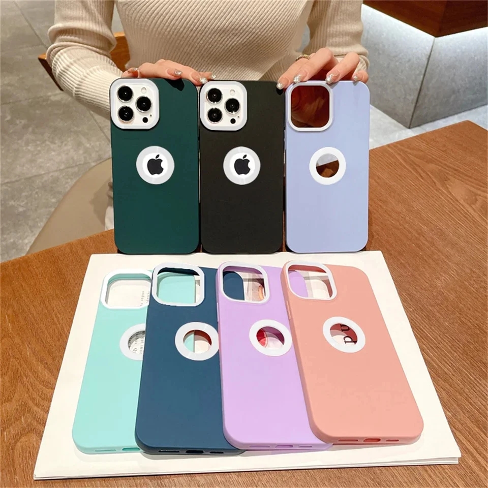CD LOGO Hole Matte Liquid Silicone Shockproof Case For iPhone
