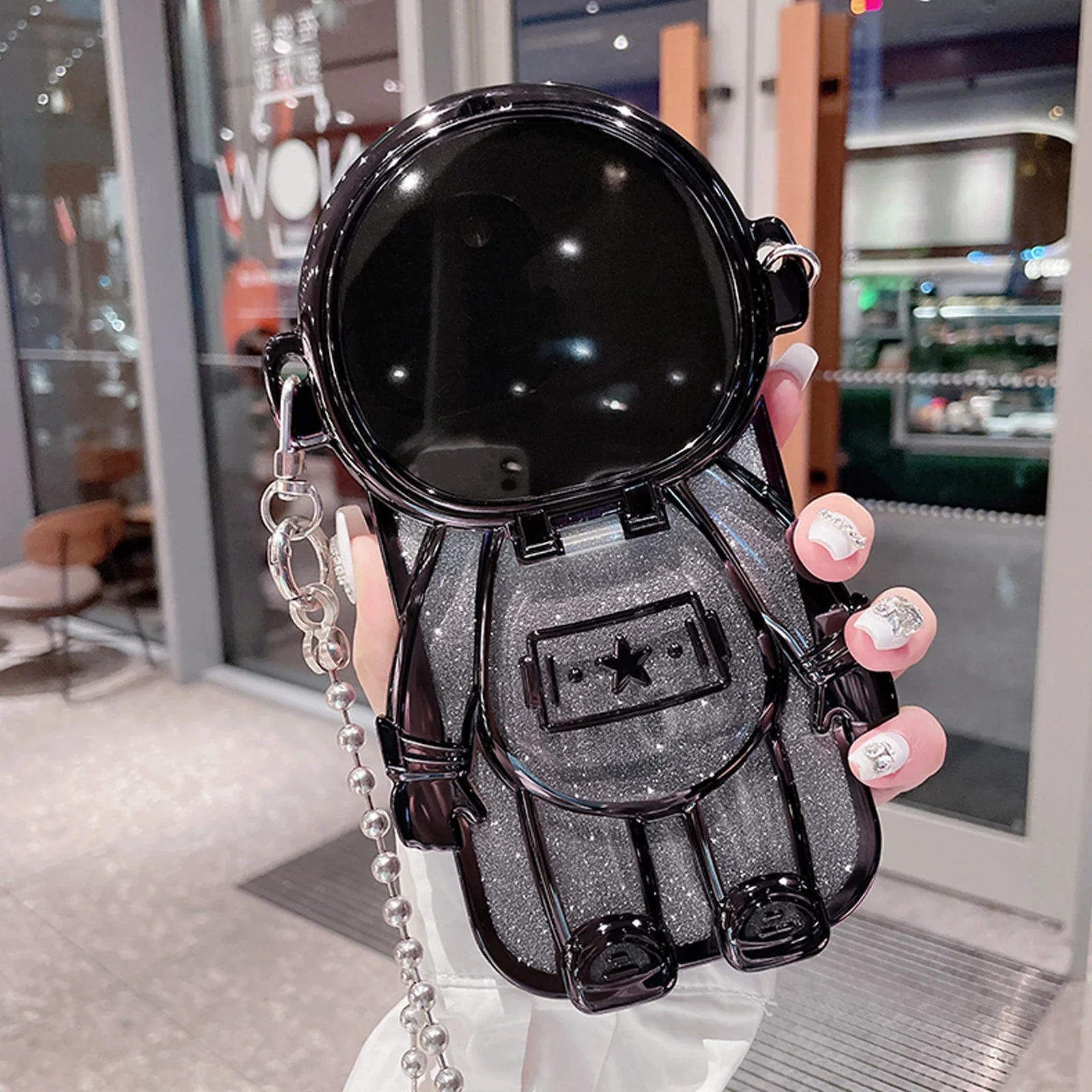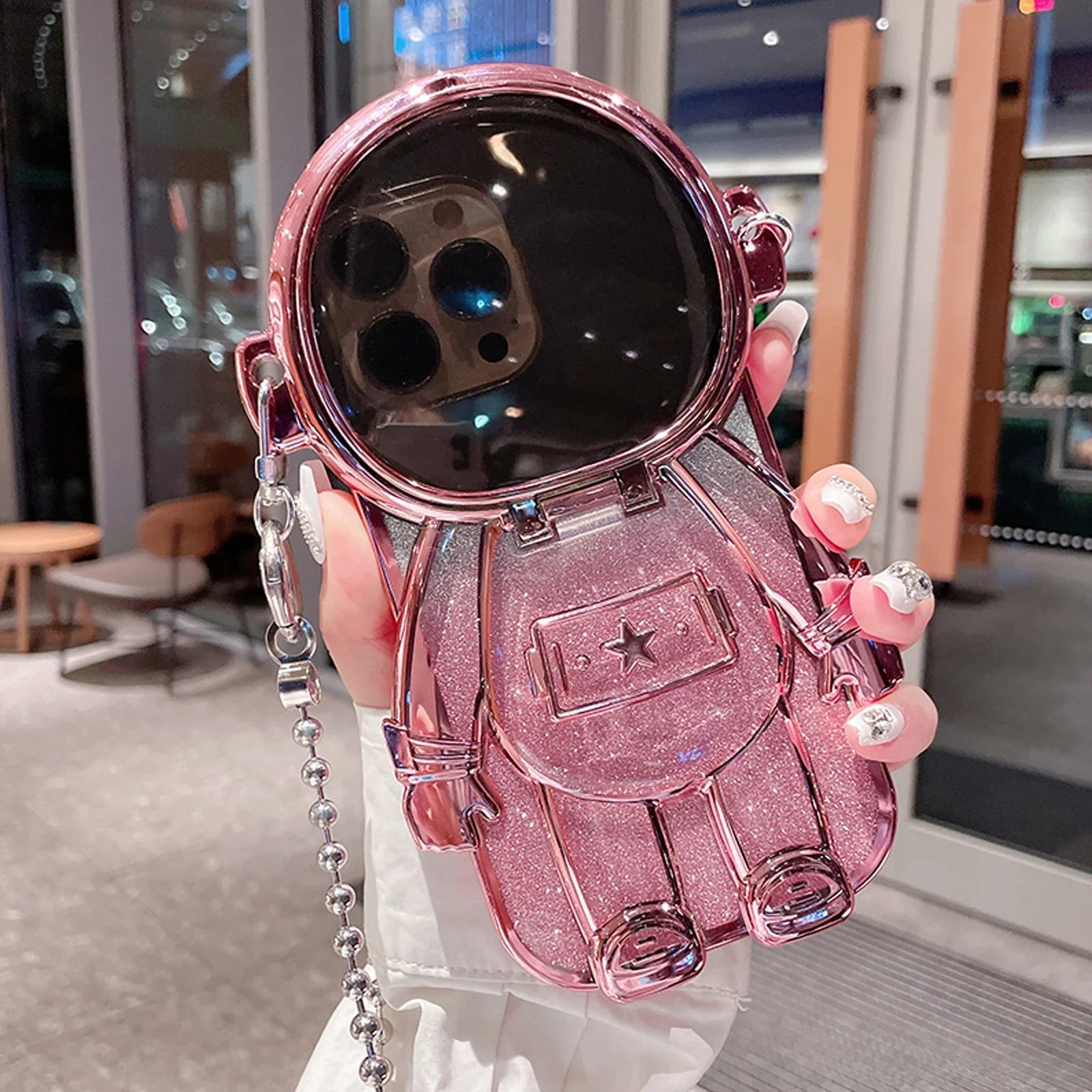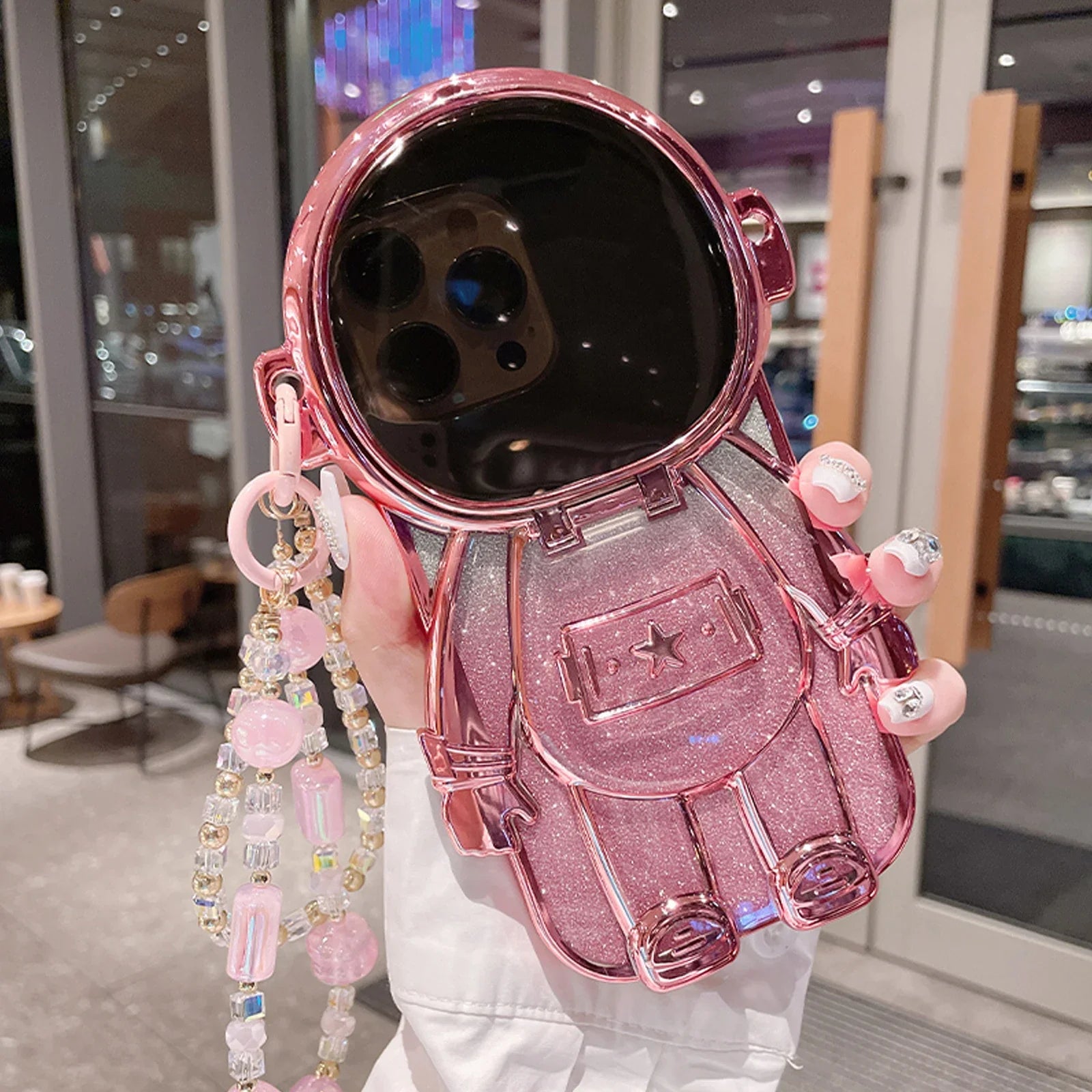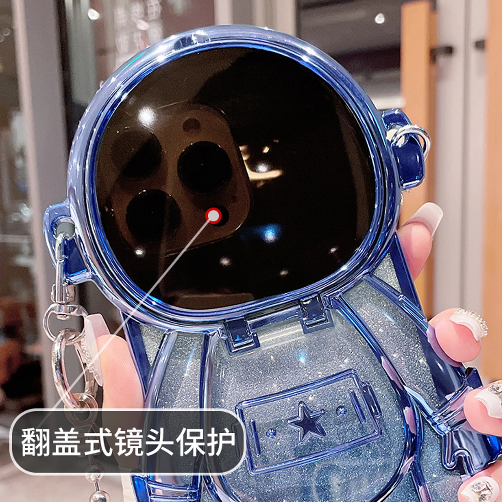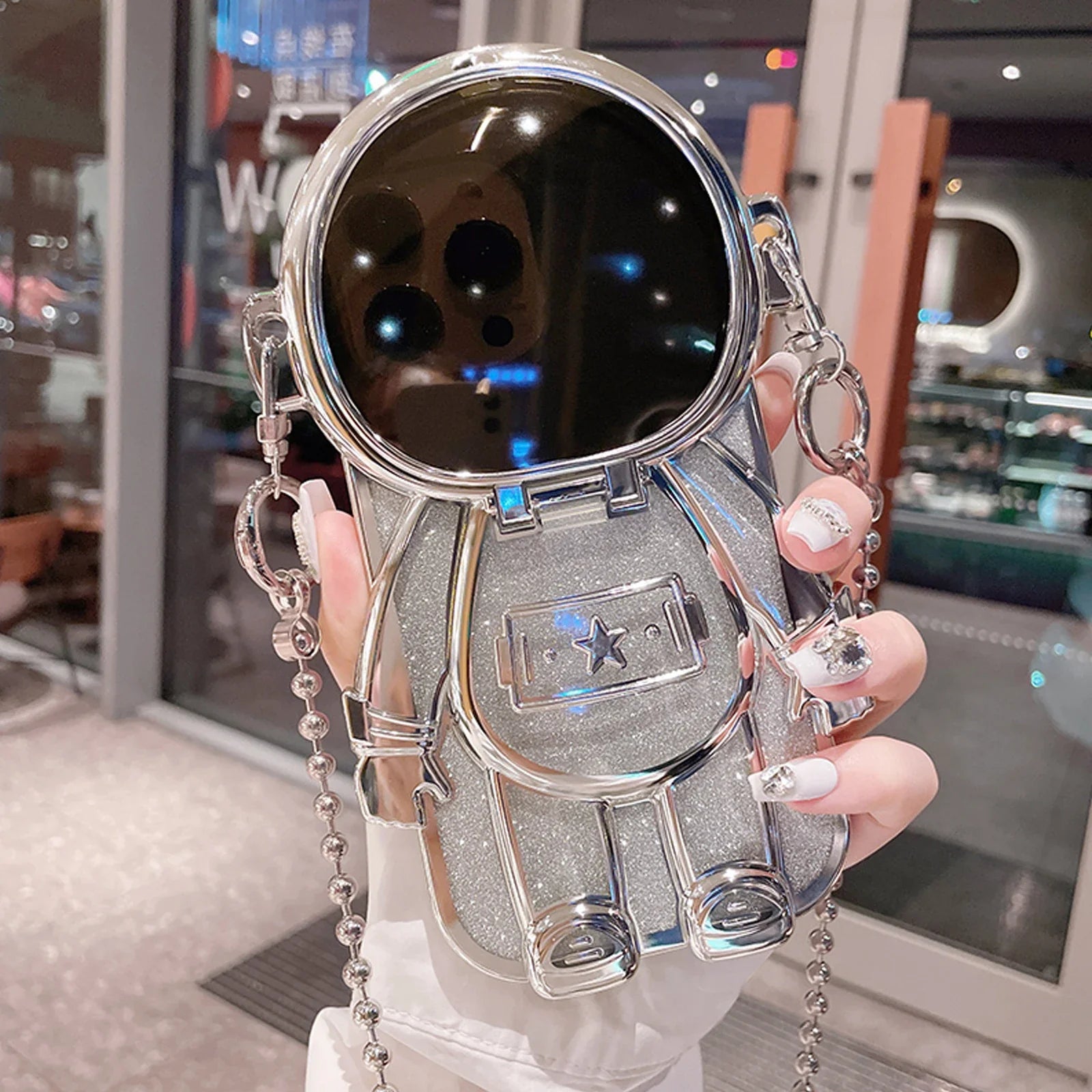 Luxury 3D Astronaut Lens Makeup Mirror Bracket Strap Phone Case For iPhone