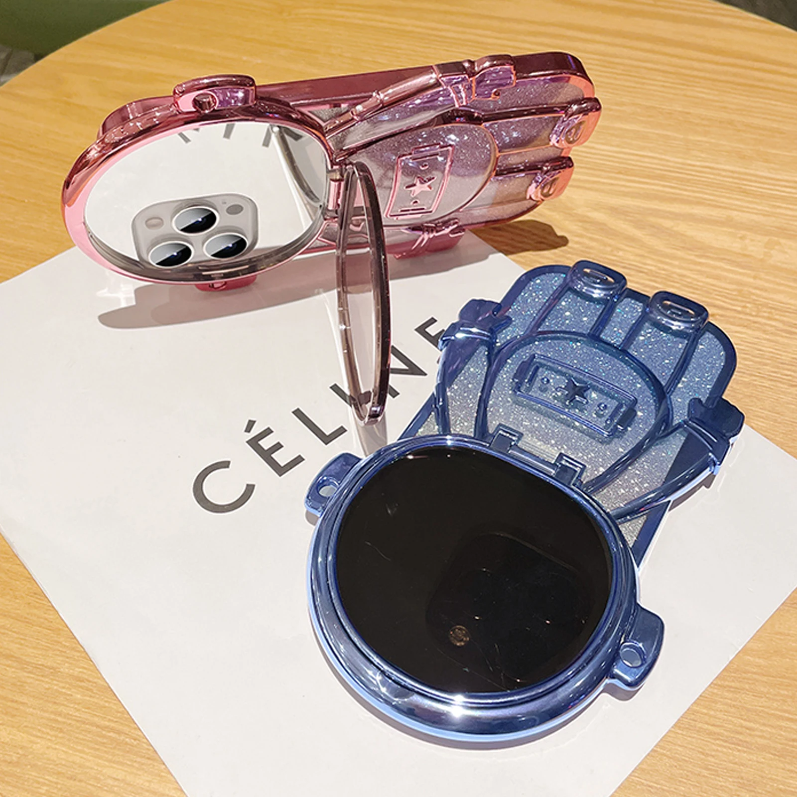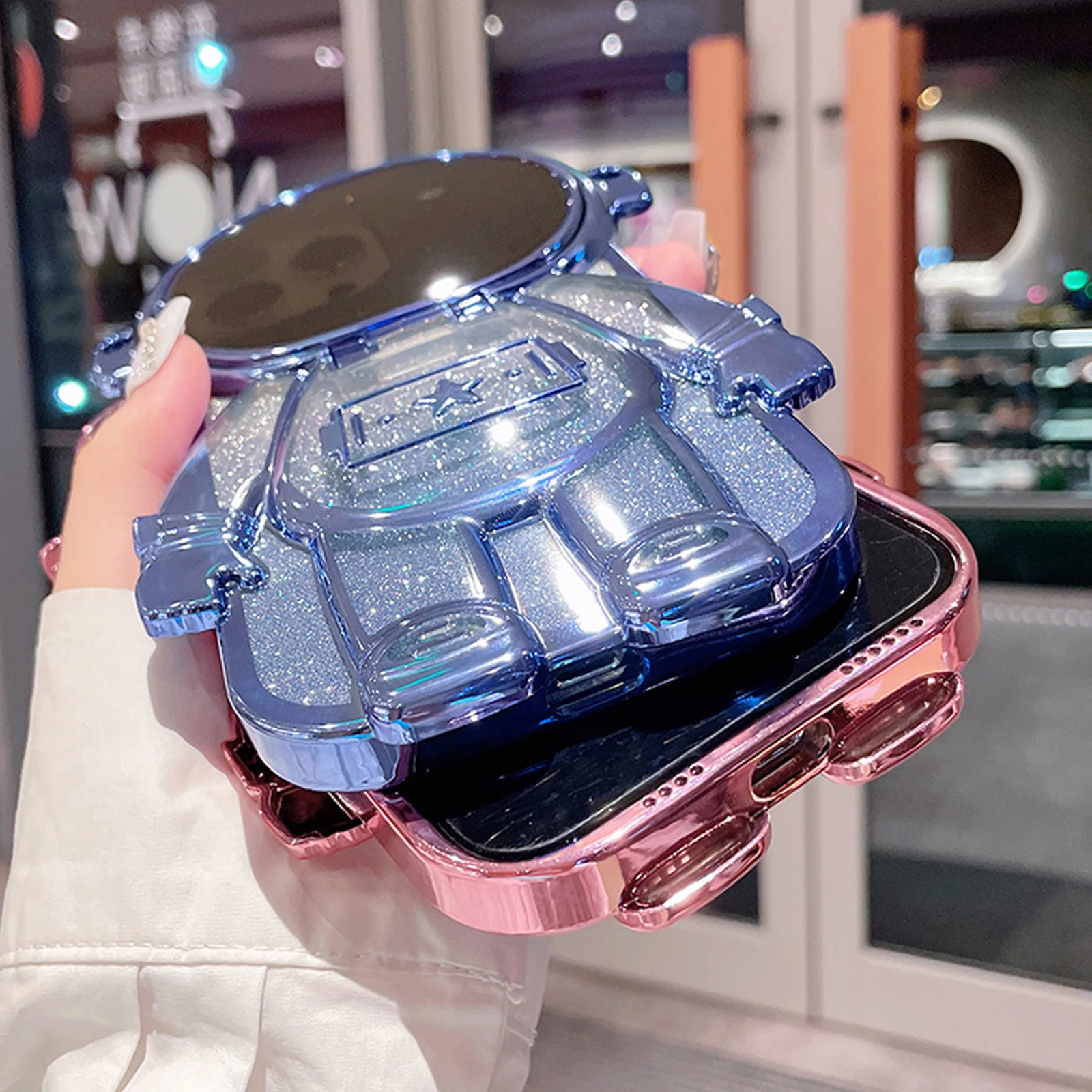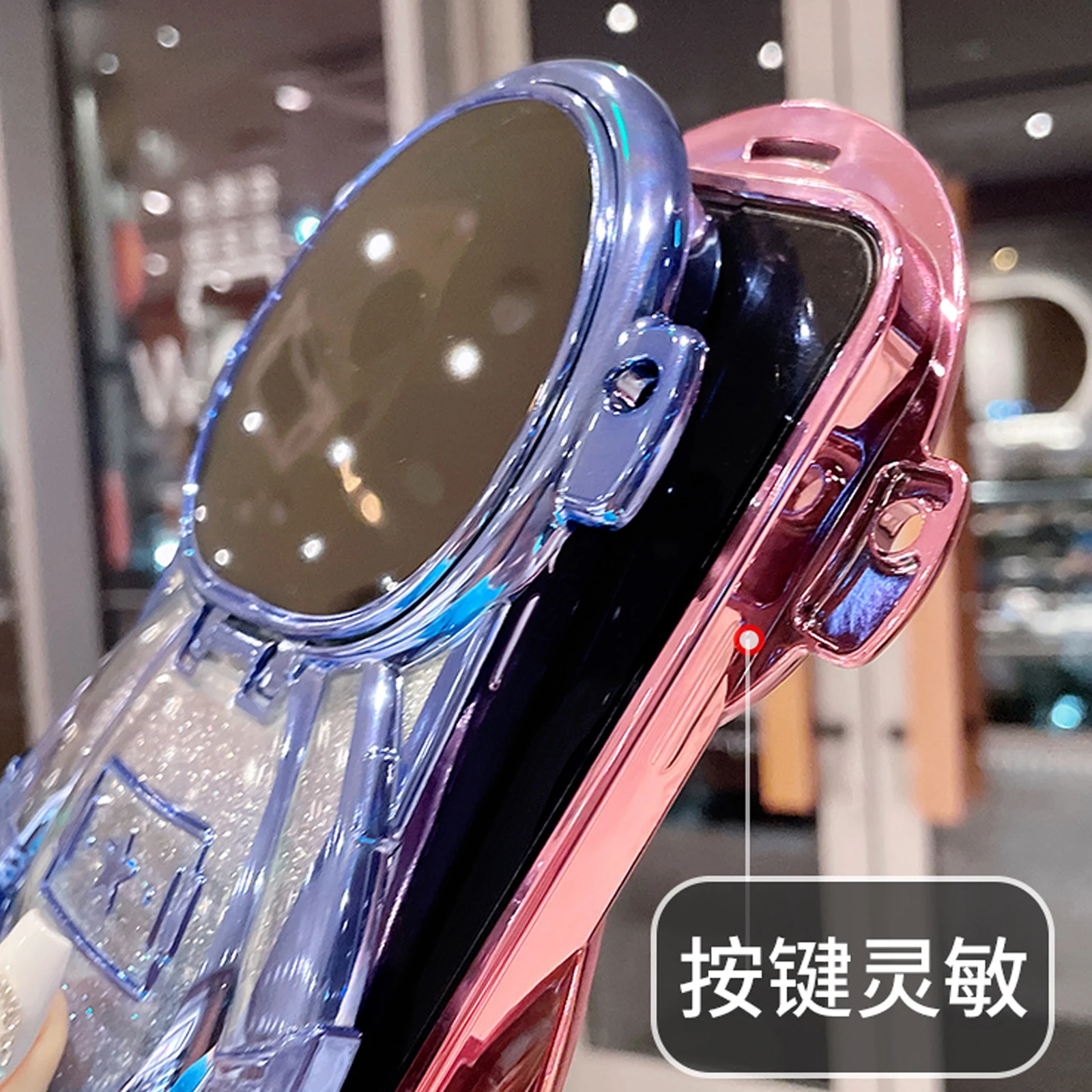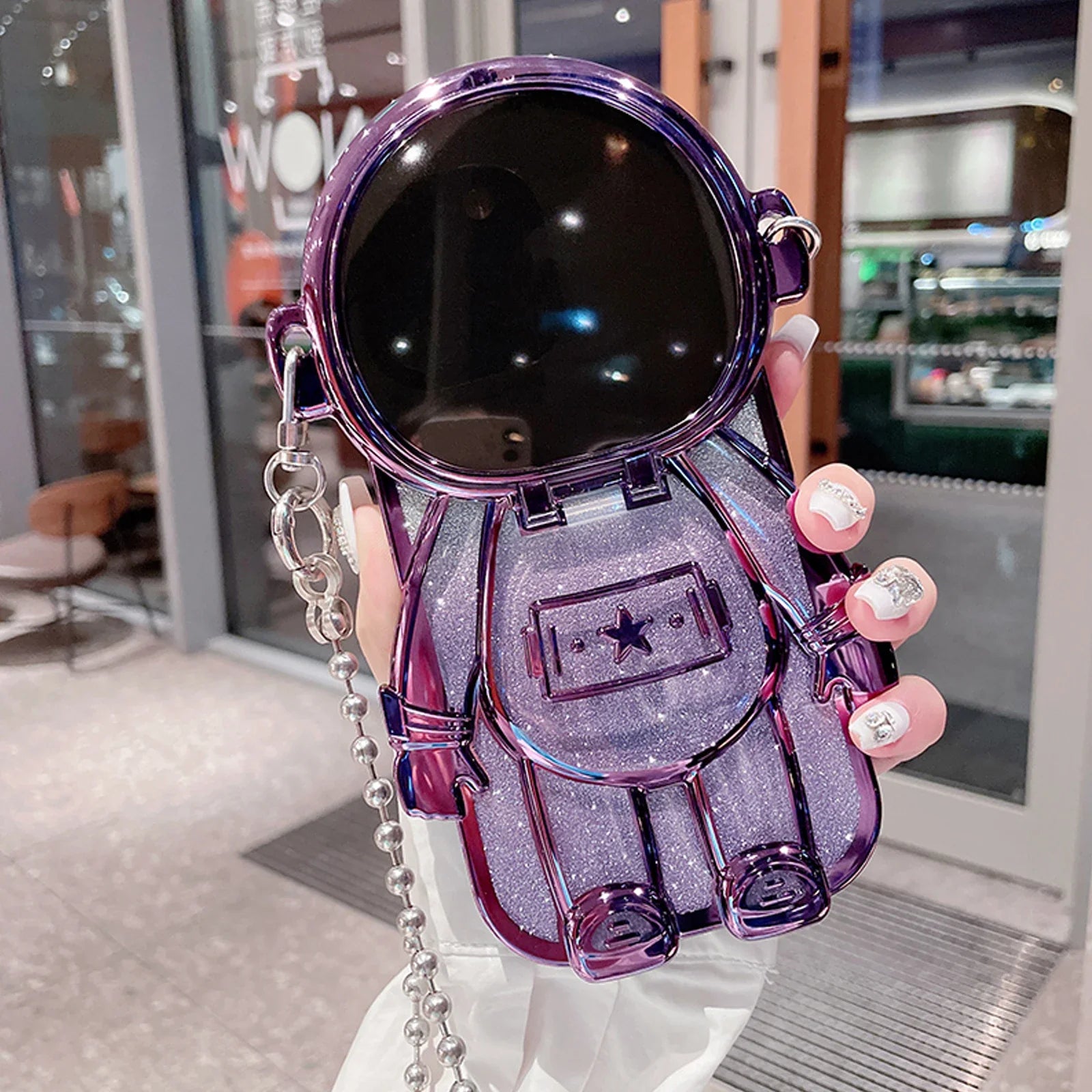 Luxury 3D Astronaut Lens Makeup Mirror Bracket Strap Phone Case For iPhone