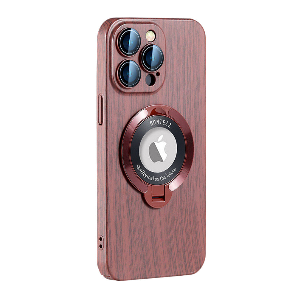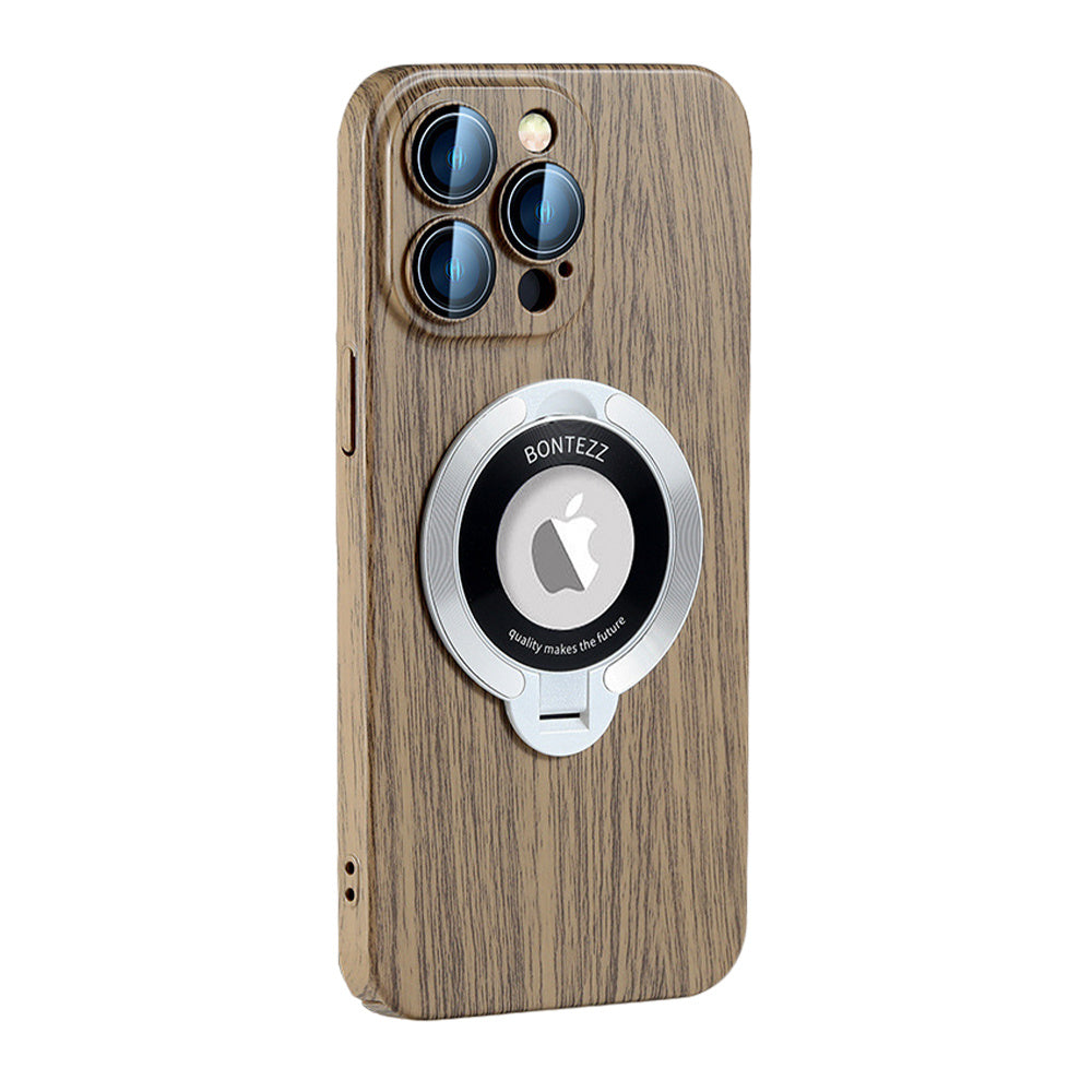 Peach Wood Grain Magnetic Bracket Phone Case
