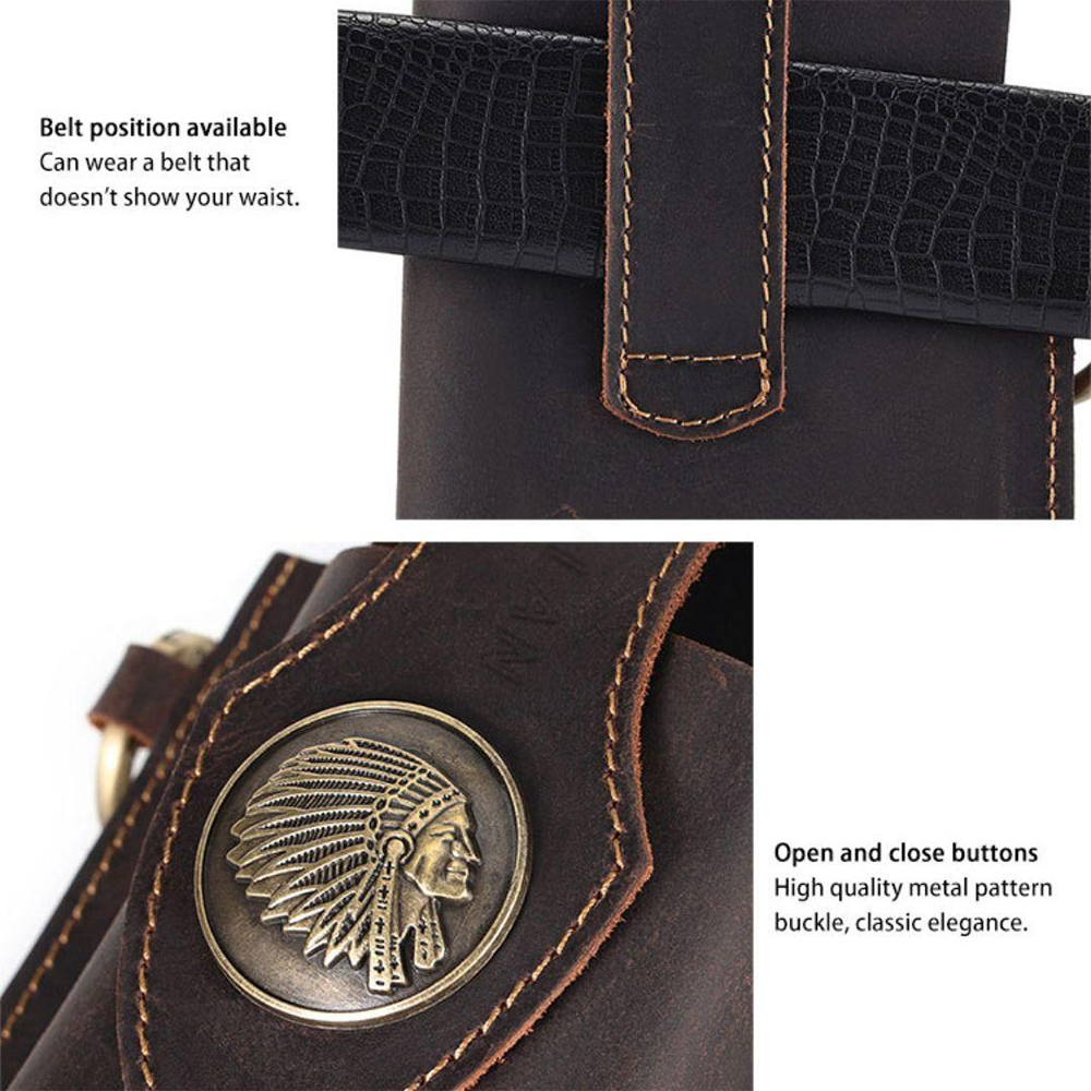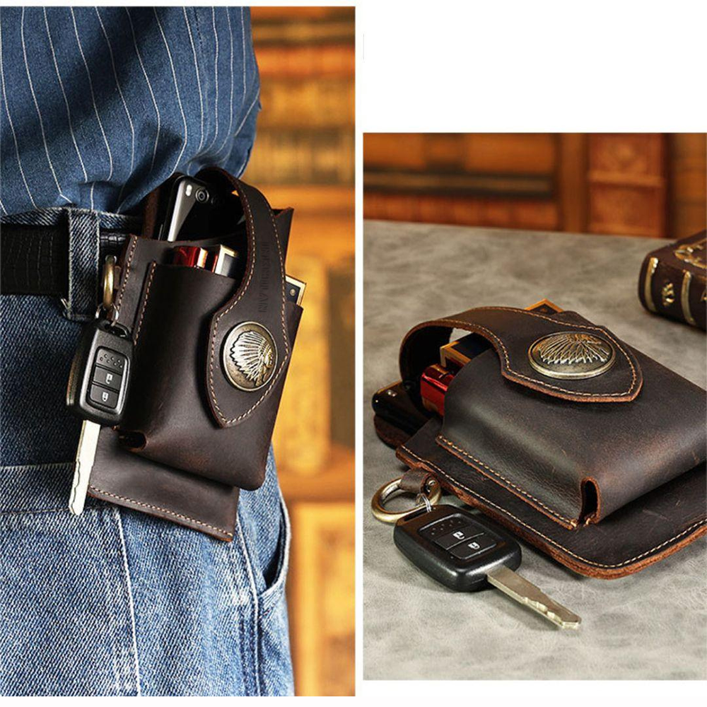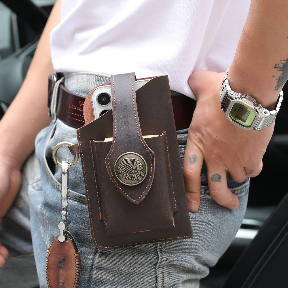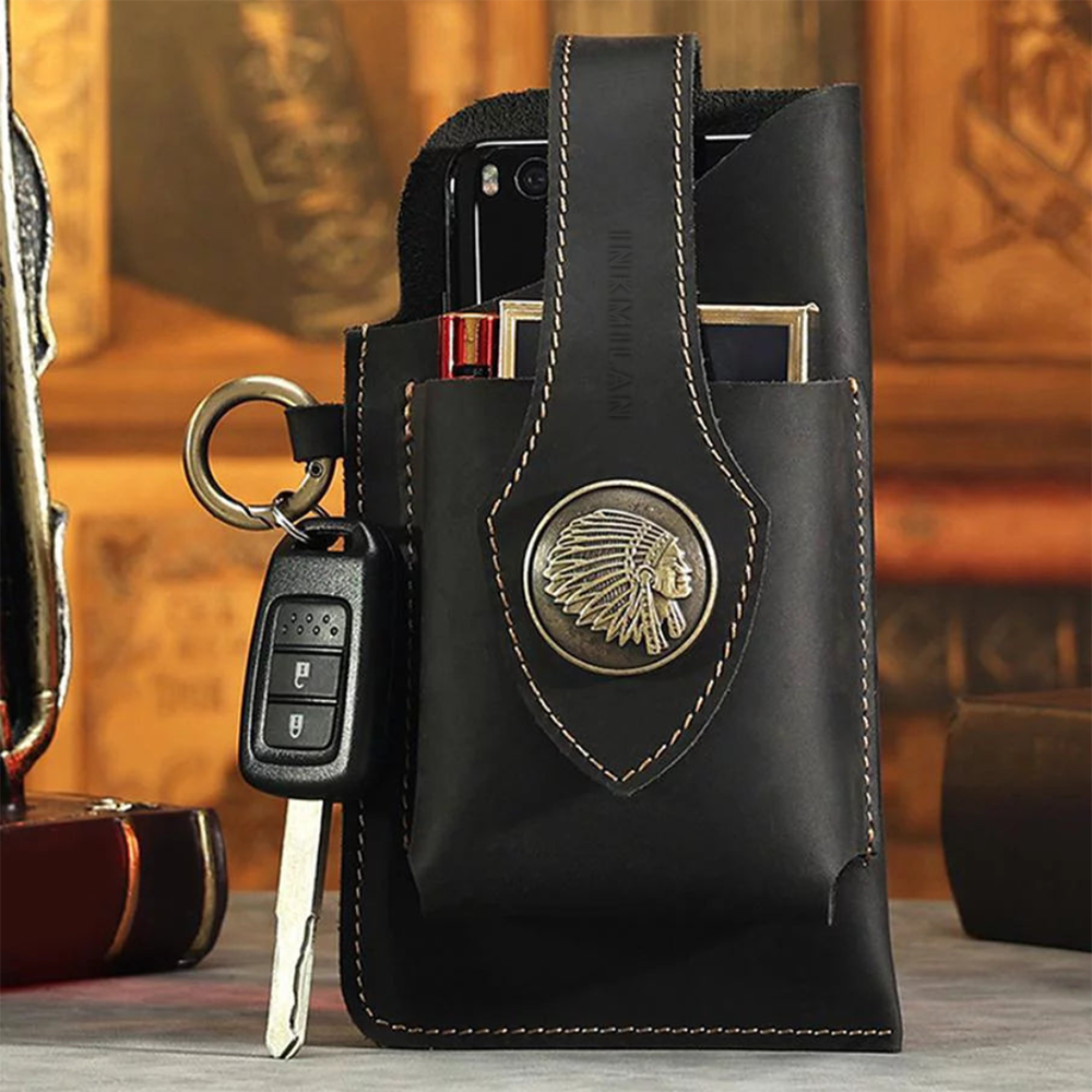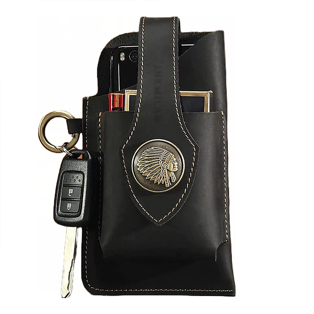 Thoughtful Design : Front protection buckle design ensures secure storage for the phone and other items.Metal hook for hanging keys on the side, facilitating quick key retrieval.
