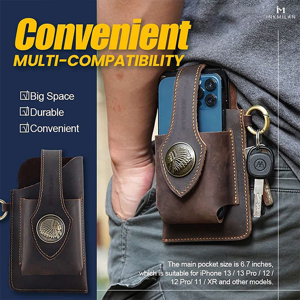 Convenient & Multi-compatibility : Quick phone access with a belt ring for any standard-size belt.Firmly fixed on the waist for hands-free convenience.Main pocket size: 6.7 inches, fits iPhone 13/13 pro / 12/12 pro / 11 / Xr and other models.