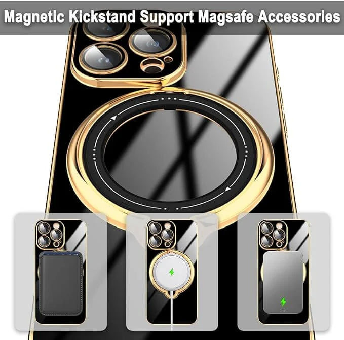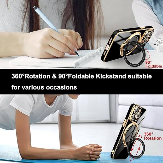 - [Kickstand Compatible with Magsafe] This Phone case comes with a 360-degree rotation and 90-degree foldable Kickstand works well as a good stand for watching movie, video, pictures. Support All Magsafe Accessories.