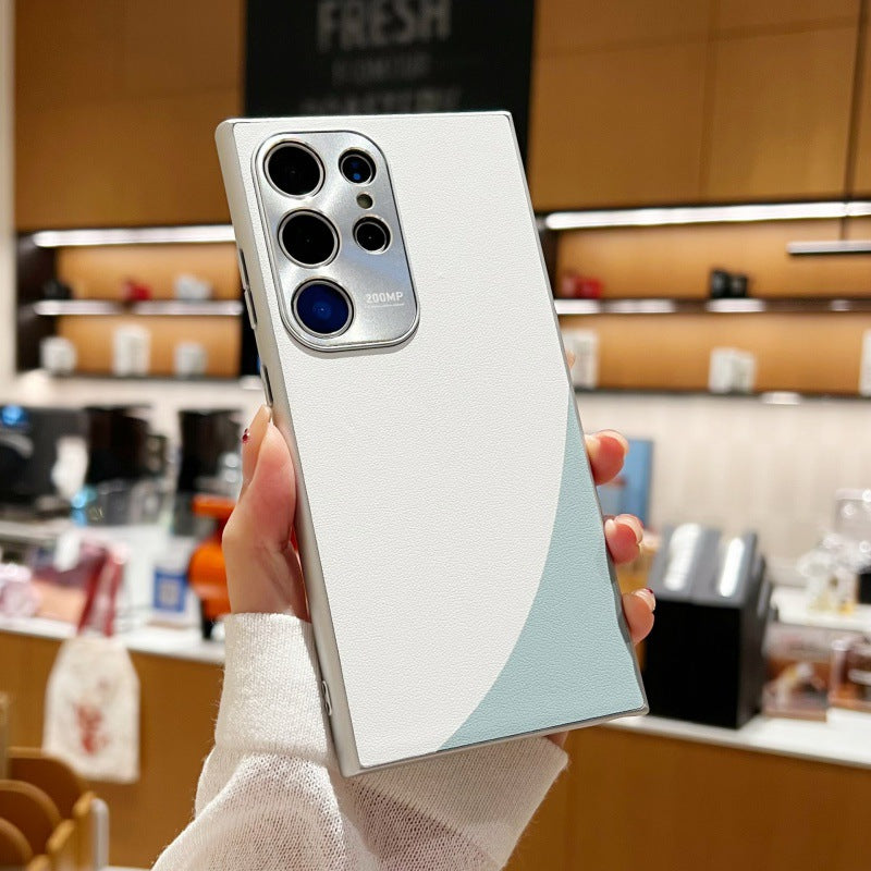 Plain leather color matching lens full cover anti-drop protective cover suitable for S24/S23/S22 series