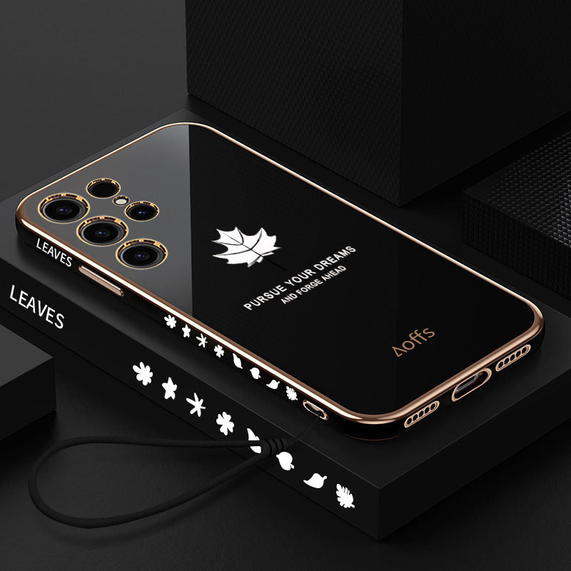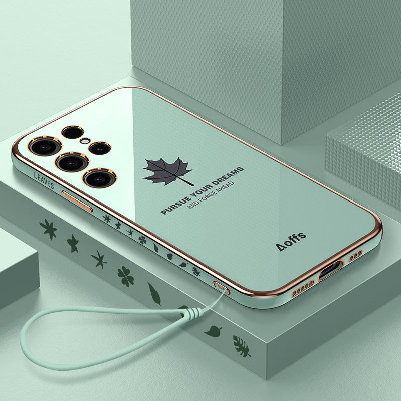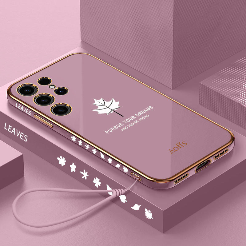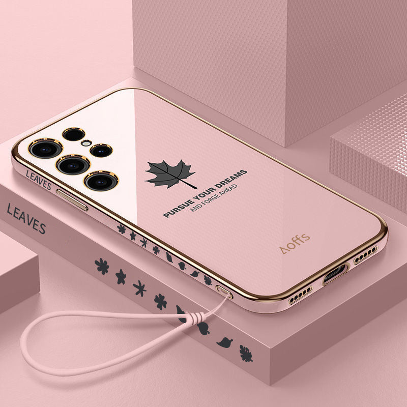 Plating Square Maple Leaf Case for Samsung Galaxy S24 Series