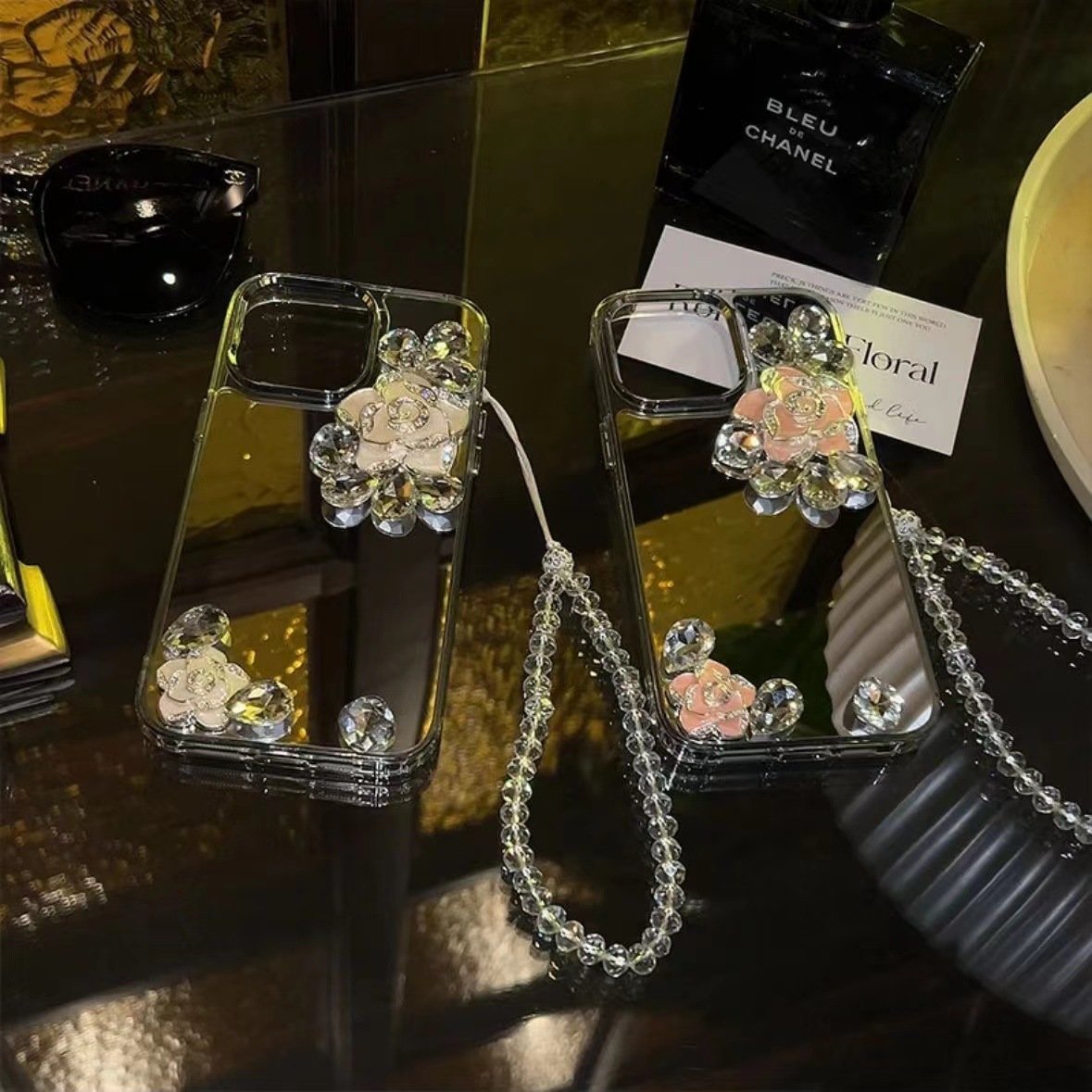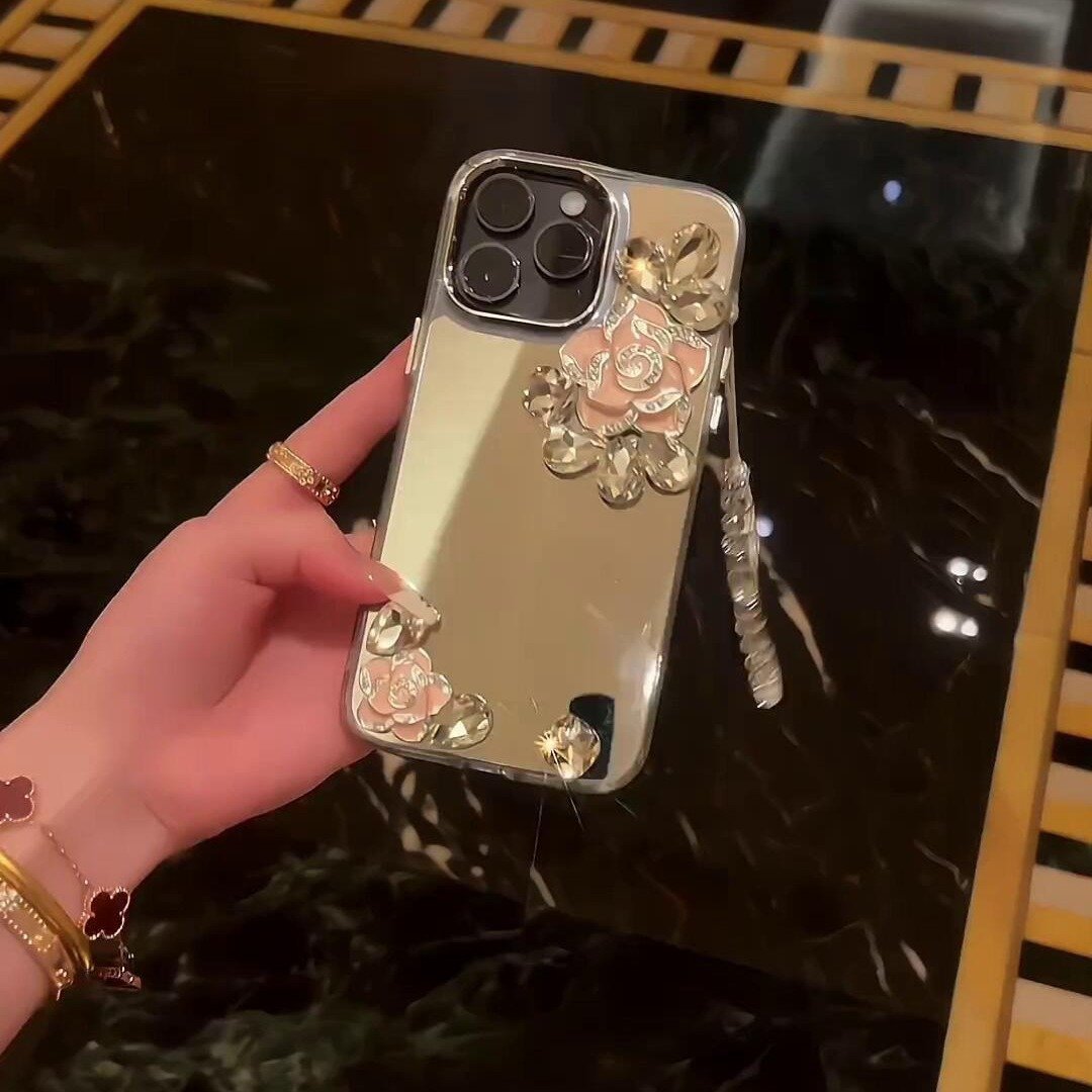 Premium Luxury Rhinestone Camellia Apple Phone Case