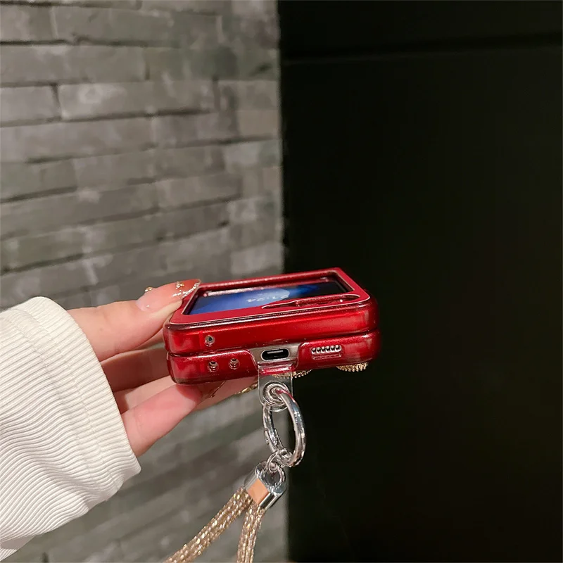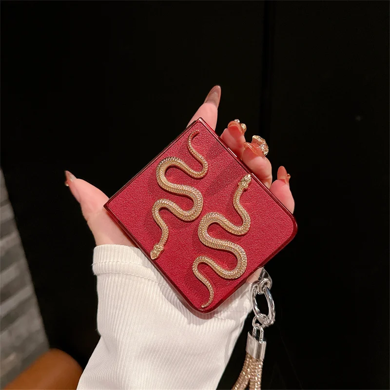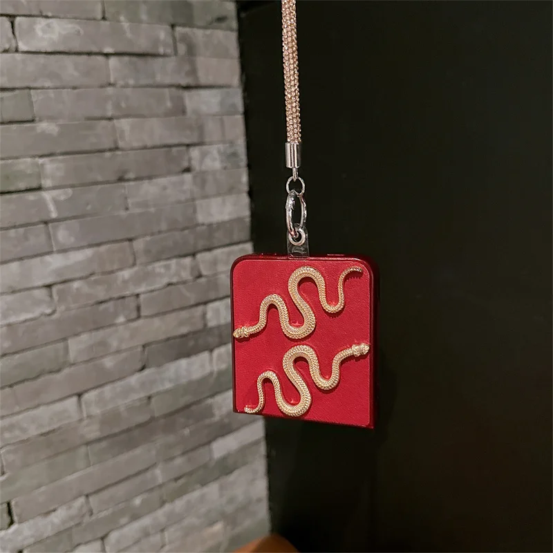 Red Leather Snake Case with Bracelet for Z Flip Series