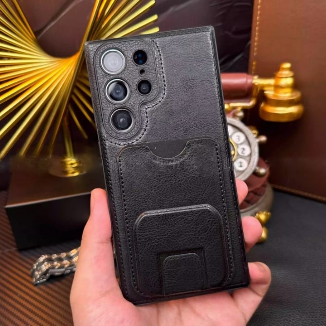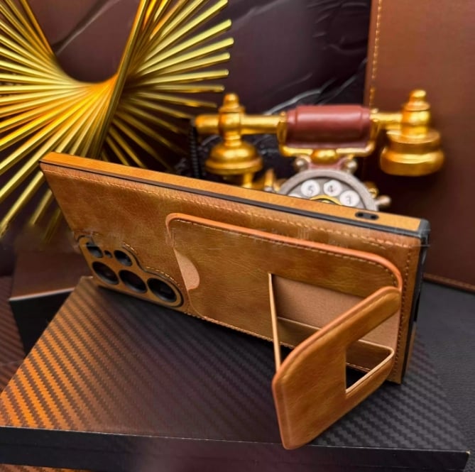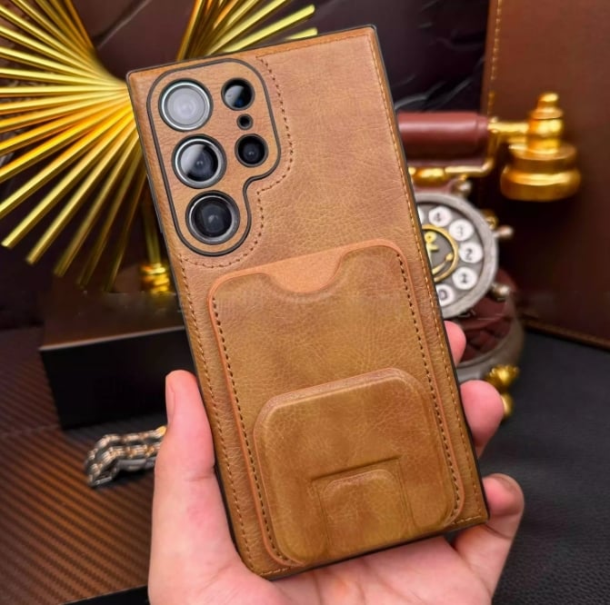 Retro Anti-fingerprint Card Leather Holder Case For Samsung