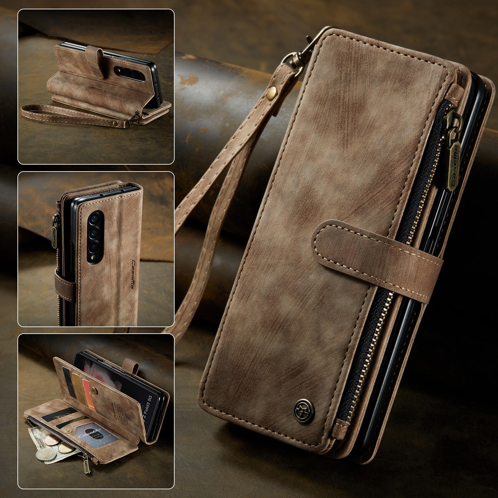 Retro Card Wallet Leather Phone Case For Samsung Z Fold Series