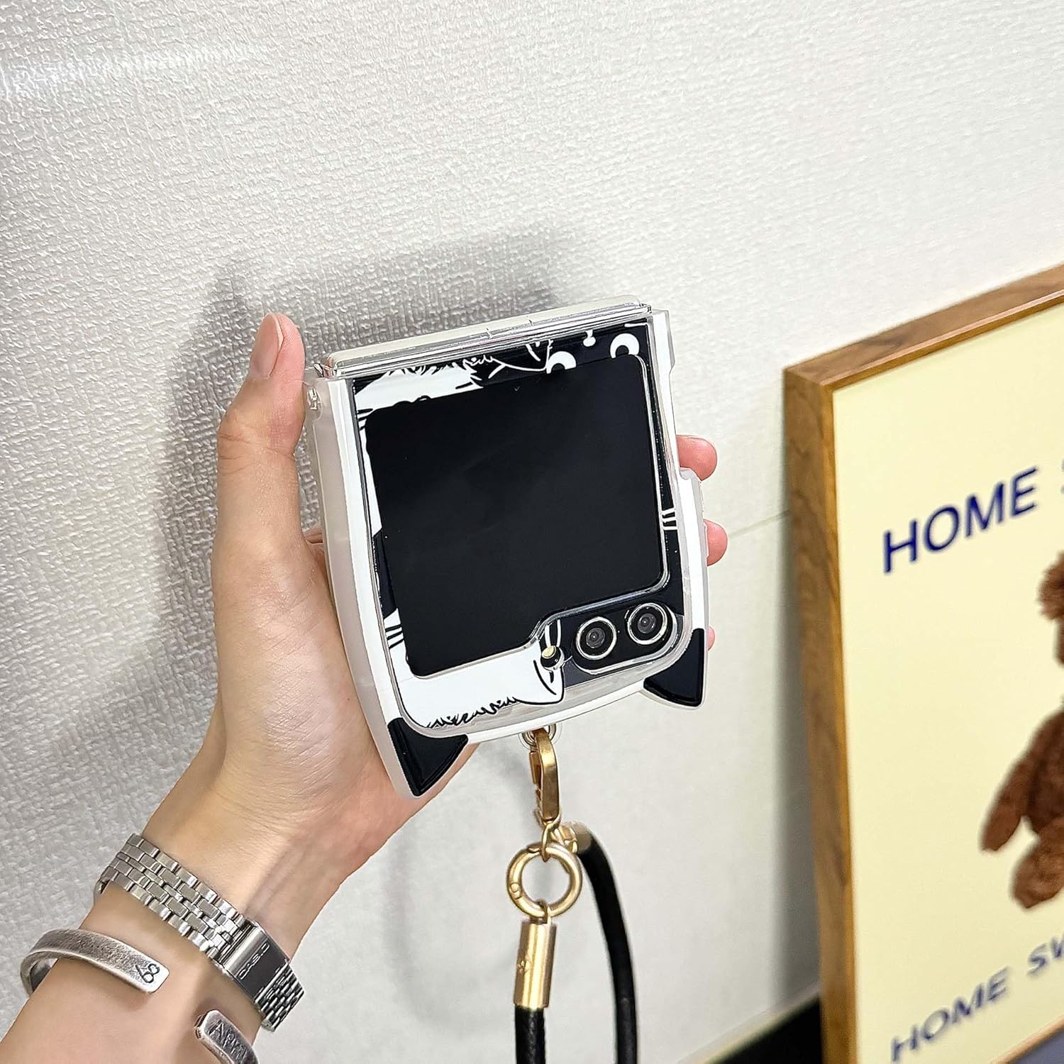 The [New Cat Ears] Black and White Cat Phone Case is the perfect blend of cute and stylish. Featuring a charming cat ear design, this case adds a playful touch to your Galaxy Z Flip 3/4/5/6, making it an instant conversation starter.