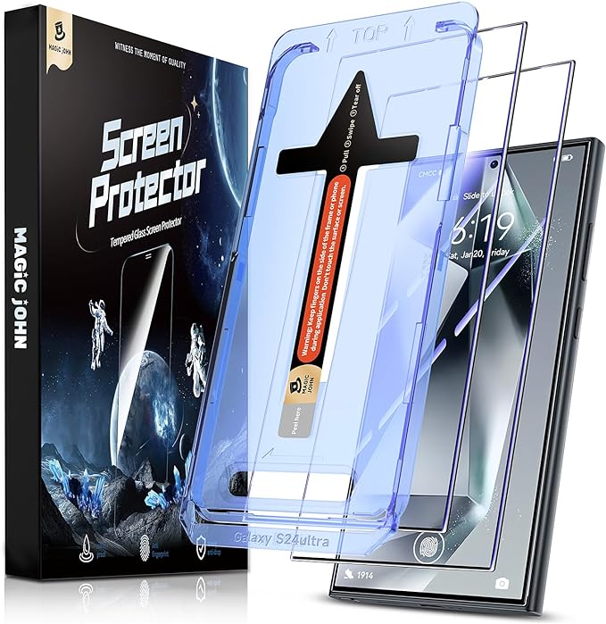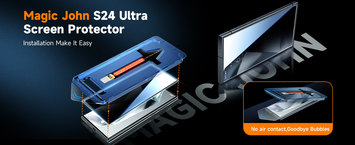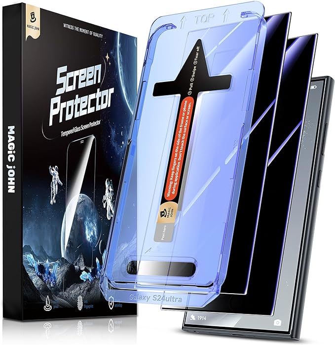 [Anti-Fingerprint] MAGIC JOHN privacy glass screen protector for Samsung Galaxy S24 Ultra is finished with oleophobic coating to against oil residue from fingerprints from long-term use.