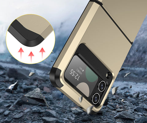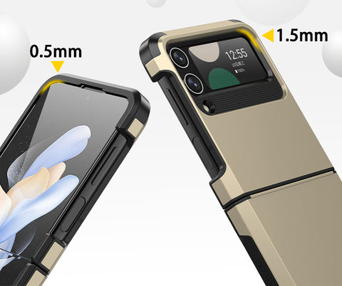 The Samsung Z Flip 5 Military Folding Screen Phone Case provides military-grade protection for your phone. Its hybrid construction features a shock-absorbing TPU bumper and a durable polycarbonate exterior wrapped in an impact-resistant polycarbonate shell. This all-in-one case provides maximum protection to keep your phone safe.