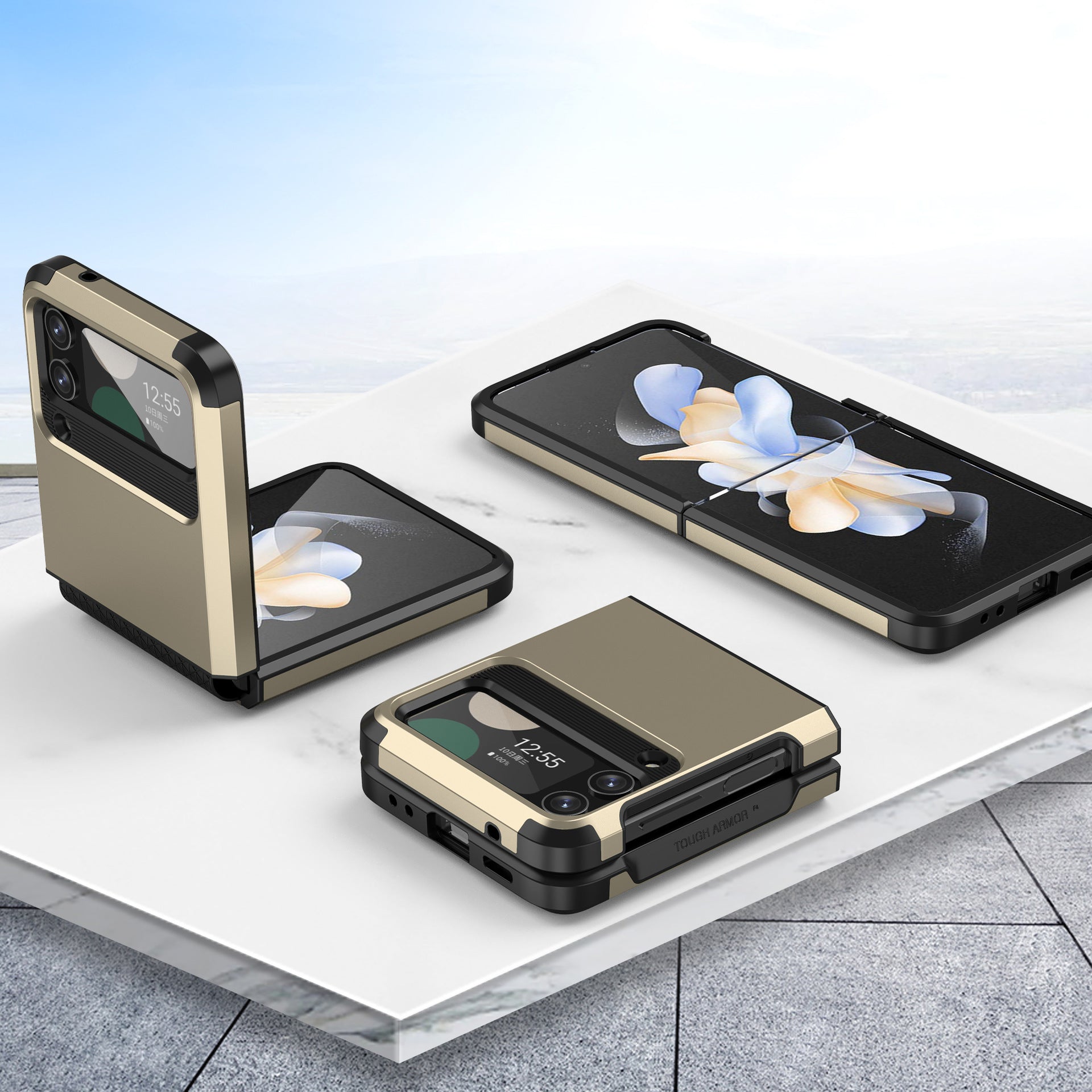 The Samsung Z Flip5 Military Folding Screen Phone Case protects your device with a tough TPU+PC material combination. Offering both soft and hard protection, this case will protect your phone from drops, scratches, and bumps.