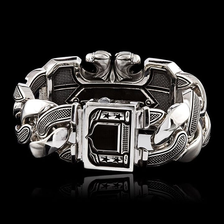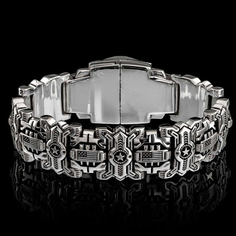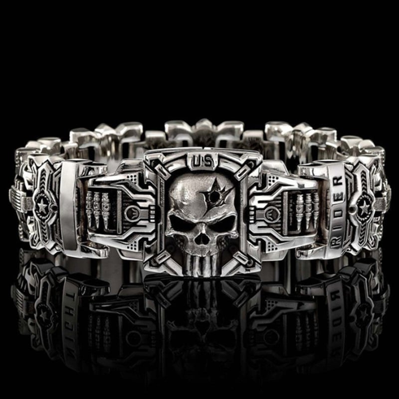 HOT SALE-Armed Forces Destiny Struggle Skull Interlock Silver Bracelet