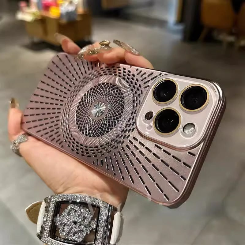 Sleek Metallic Phone Case with Heat Dissipation and Hollowed Design