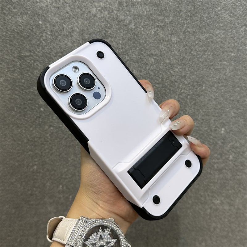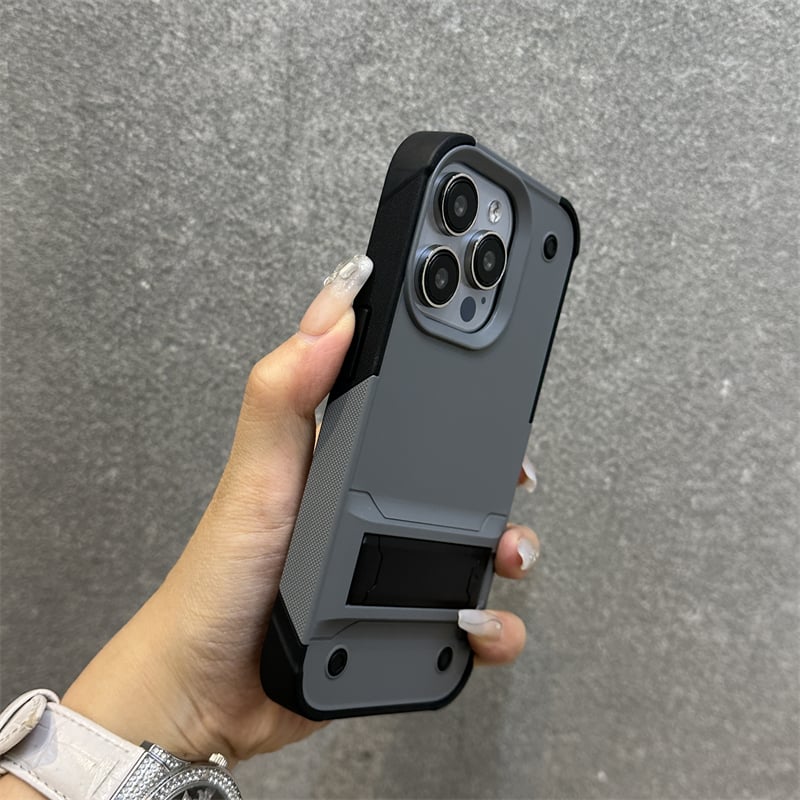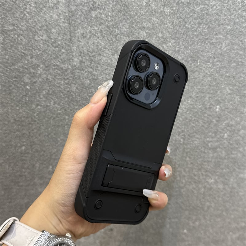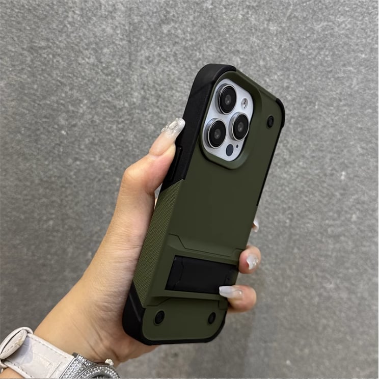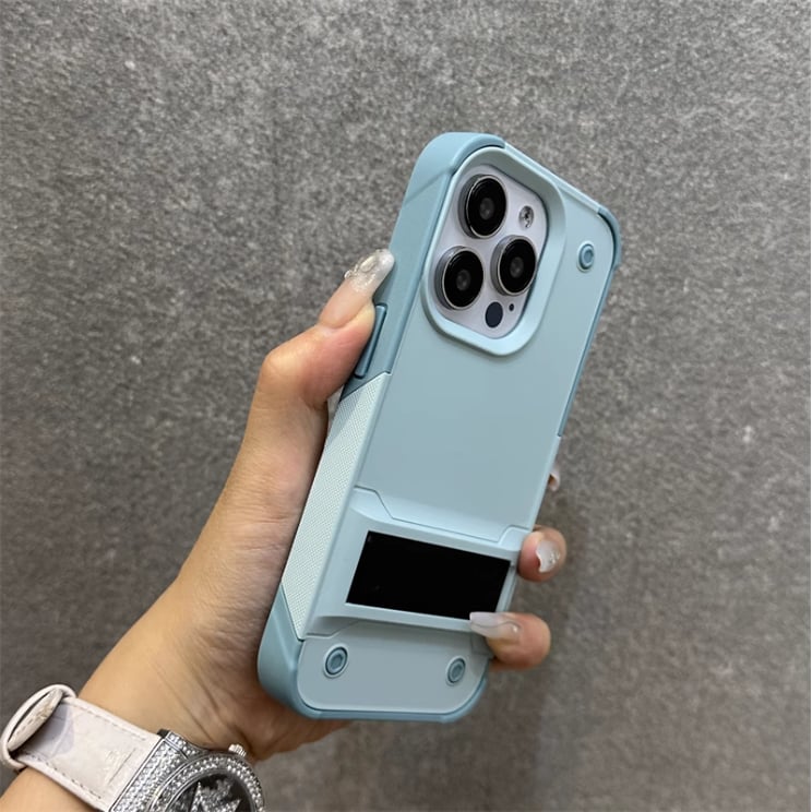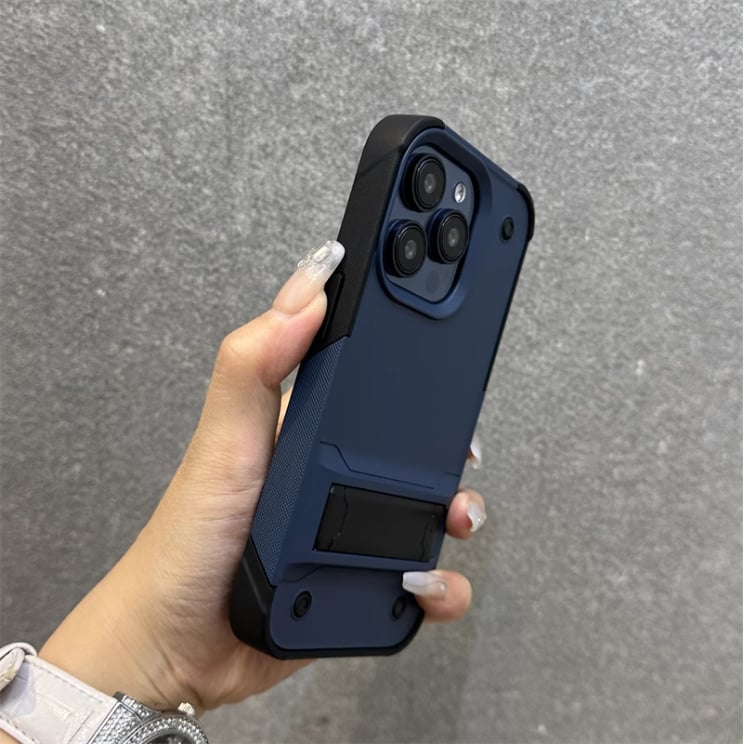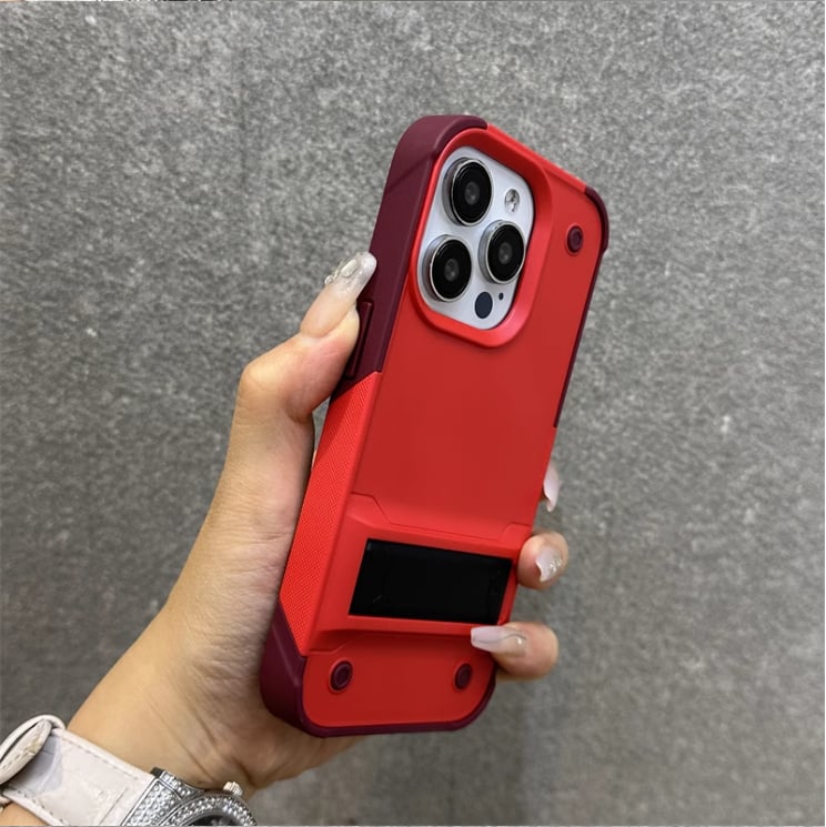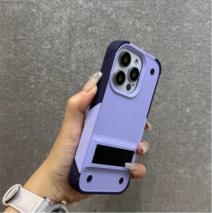Premium Solid Color Phone Case with Built-in Stand, Enhanced Drop Protection & Raised Edges for Camera and Screen