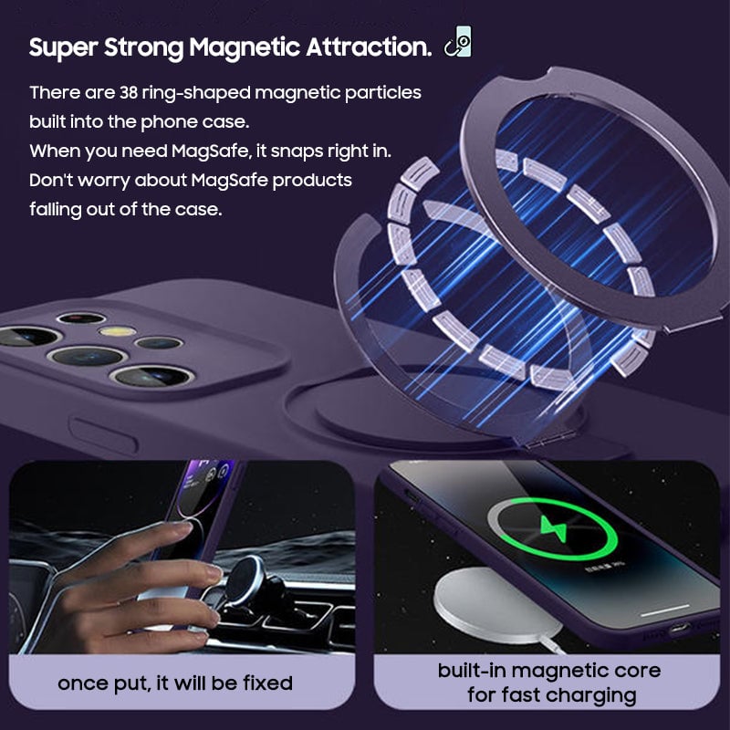 Designed with liquid silicone, this case is soft to the touch and provides excellent grip. The inner lining is made of soft microfiber to protect your phone, the multifunctional magnetic holder, and the built-in magnet provides fast wireless charging. At the same time, it can also be used as a mobile phone stand, watching movies at any time.