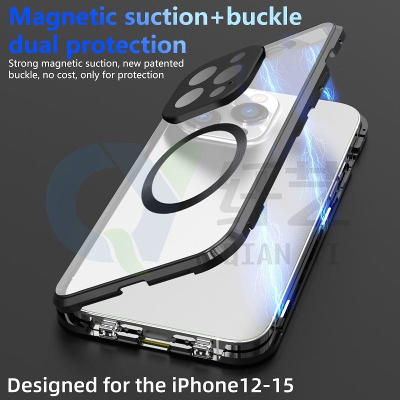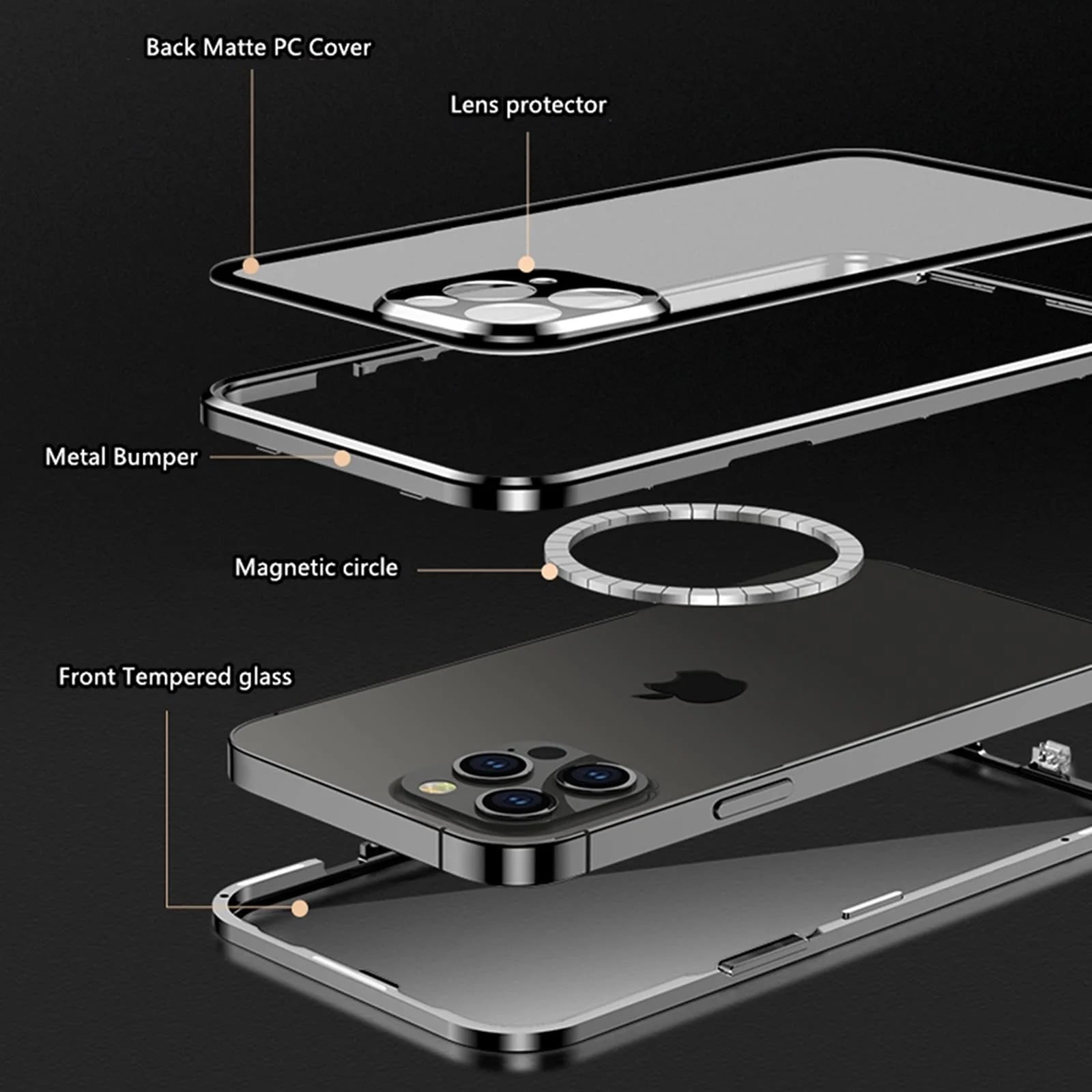 Suitable For iPhone Series Magnetic Magsafe Metal Glass Protective Mirror Buckle Anti Peeping Phone Case