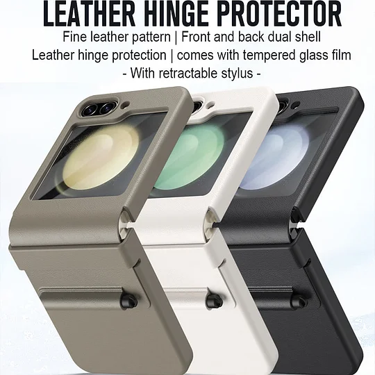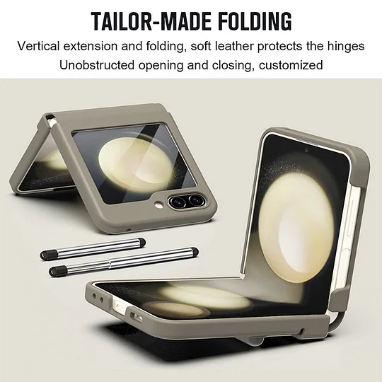 👍【Retractable Leather Hingeã€?/strong> The Samsung Galaxy Z Flip 5 mobile phone case has a delicate leather hinge wrapping design. The retractable design provides more precise and precise protection. The 360° all-inclusive hinge provides your phone with better protection against shock, dirt and scratches.