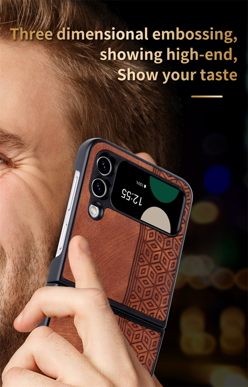 Three-dimensional embossed retro skin-feel leather folding screen mobile phone case