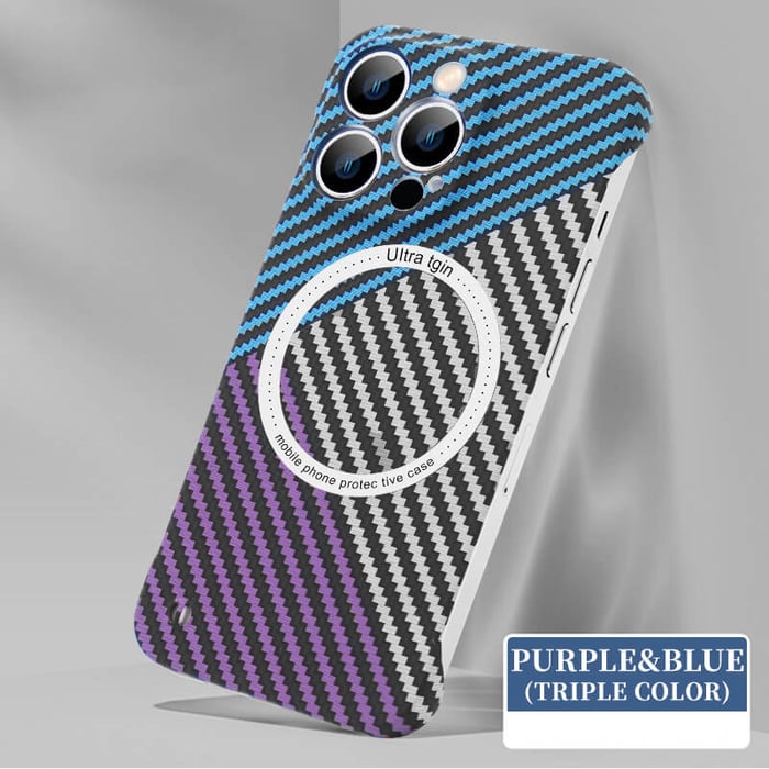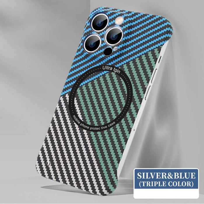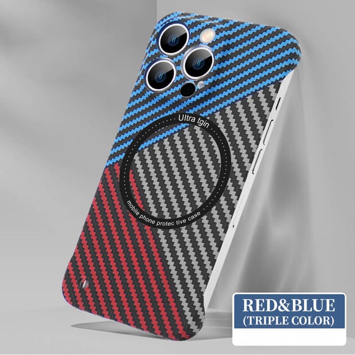 Triple Color Blocking Carbon Fiber Magnetic charging Case For iPhone