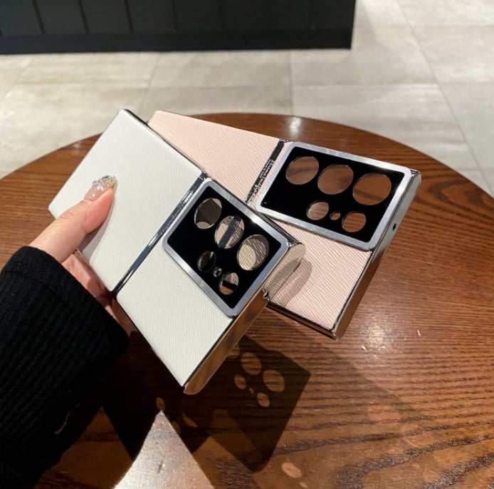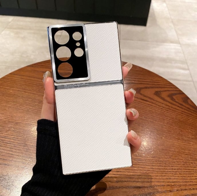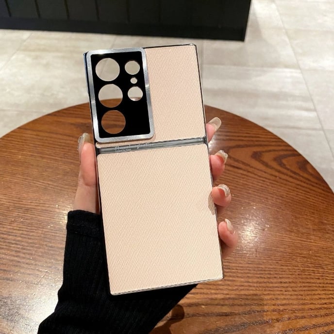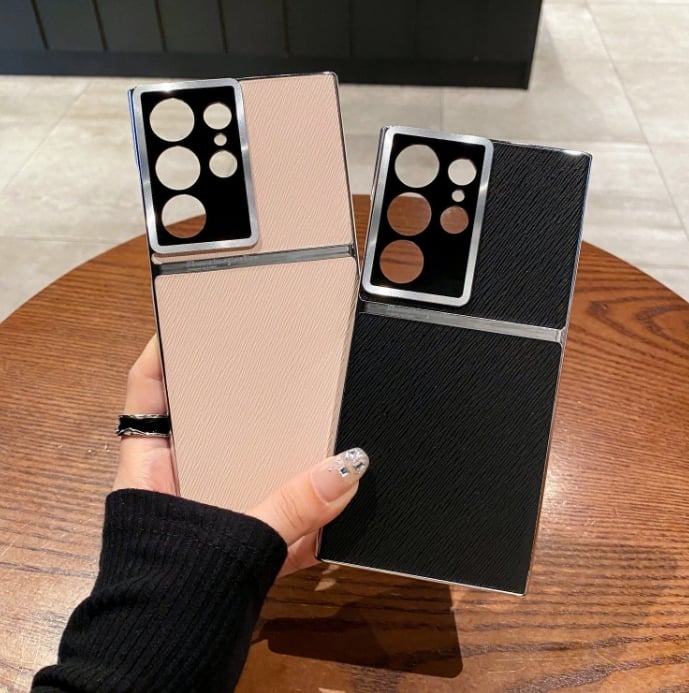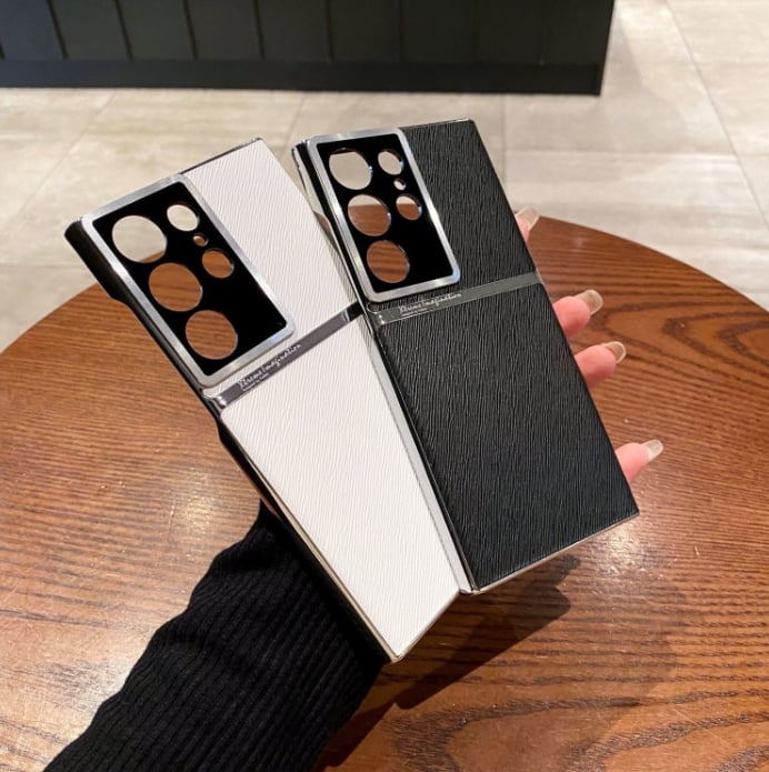 Twill Electroplated Plain Leather All-inclusive Lens Phone Case For Samsung