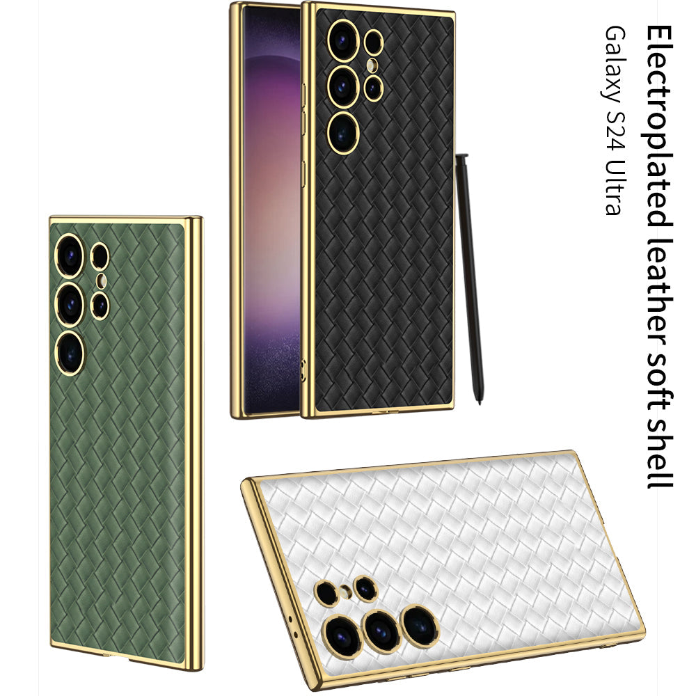 Woven Texture Electroplated Leather Phone Case For Samsung