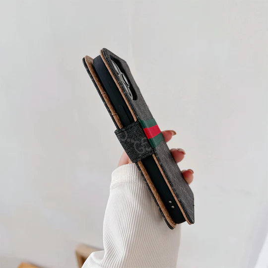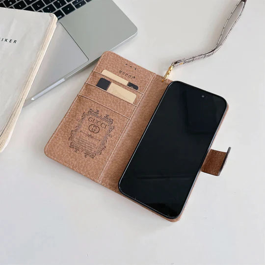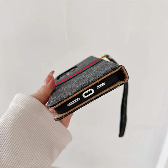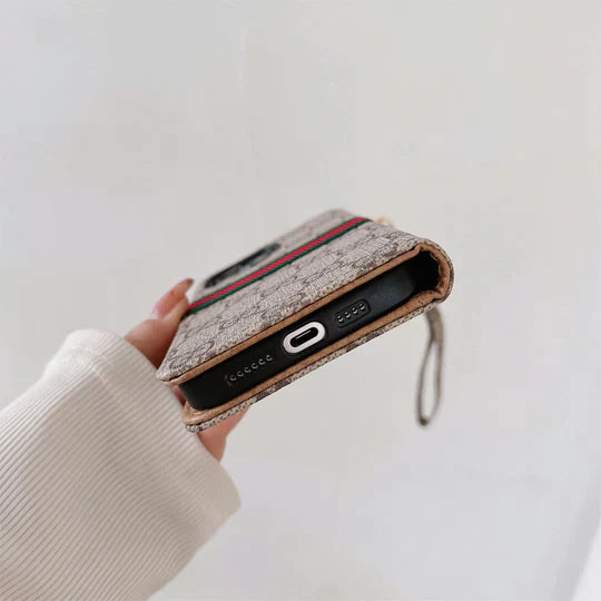 Immerse yourself in opulence with our premium GC iPhone case, available in refined beige and sleek black. This luxurious accessory seamlessly combines style and practicality, and is made of the highest quality materials that ensure an elegant and refined look. Designed with precision, it offers versatile storage with card slots, a zipped coin pocket and plenty of room for bills, all secured with a magnetic closure. Enhance your iPhone with this slim and elegant combination of timeless luxury and functionality. Choose the Premium GC wallet for a unique combination of elegance and practical design.